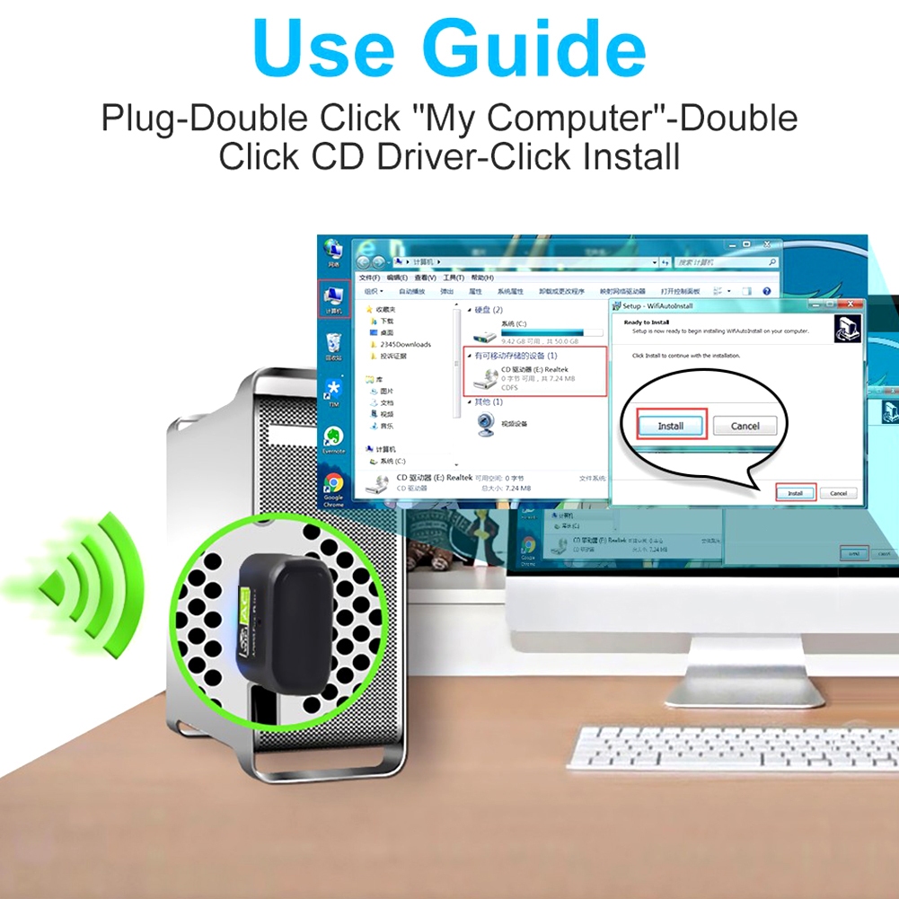 PC WiFi receiver 600Mbps WiFi Adapter USB Wifi Dongle Bluetooth Wireless Bluetooth Adapter 2.4G/5GHz