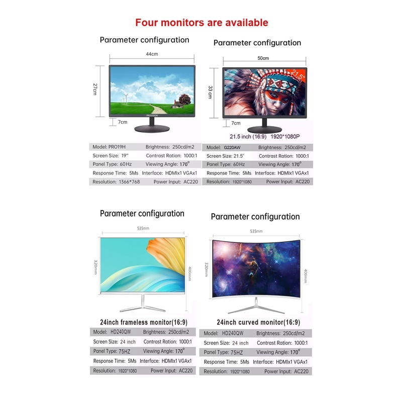 PC set Desktop computer set Inter i7 i5 i3 PC set computer set 75hz 1080P Full Set With 19"monitor