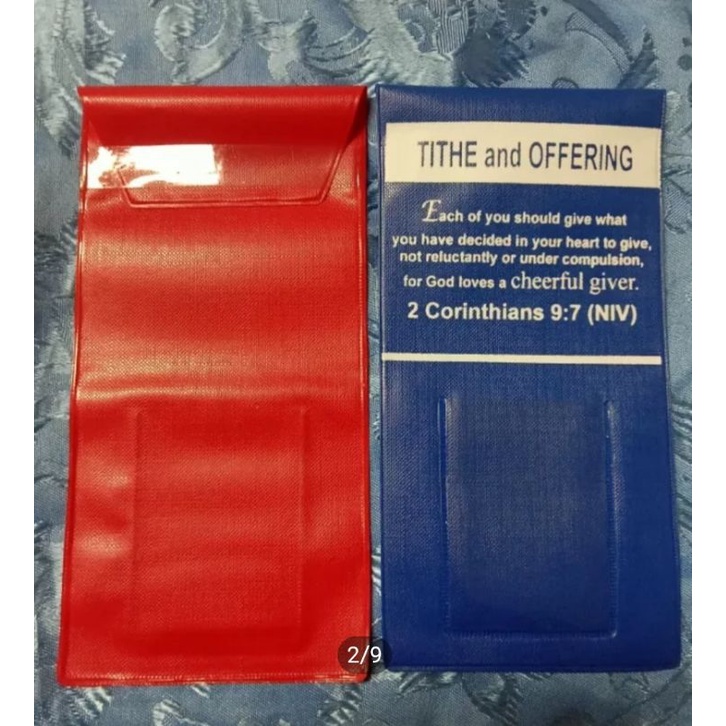 PCBS - PLASTIC TITHES ENVELOPE BLUE AND RED COLOR 10 PCS. PER BUNDLE NIV/ICB (8.75"X3.625"