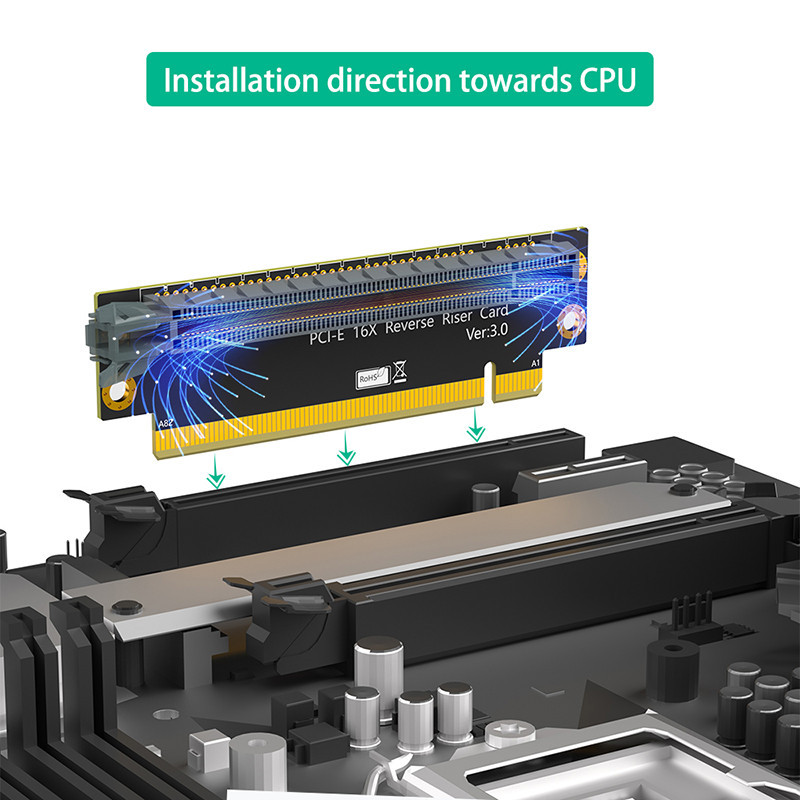 PCIE Riser Card PCI Express X16 to X16 Male to Female Expansion Card PCI-E 3.0 16X 90 Degree Reverse Riser Board For 2U Computer