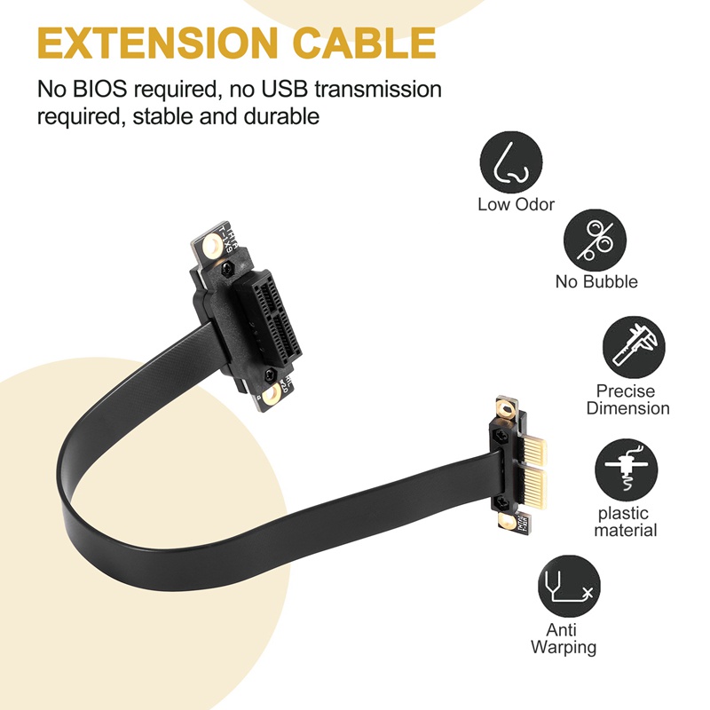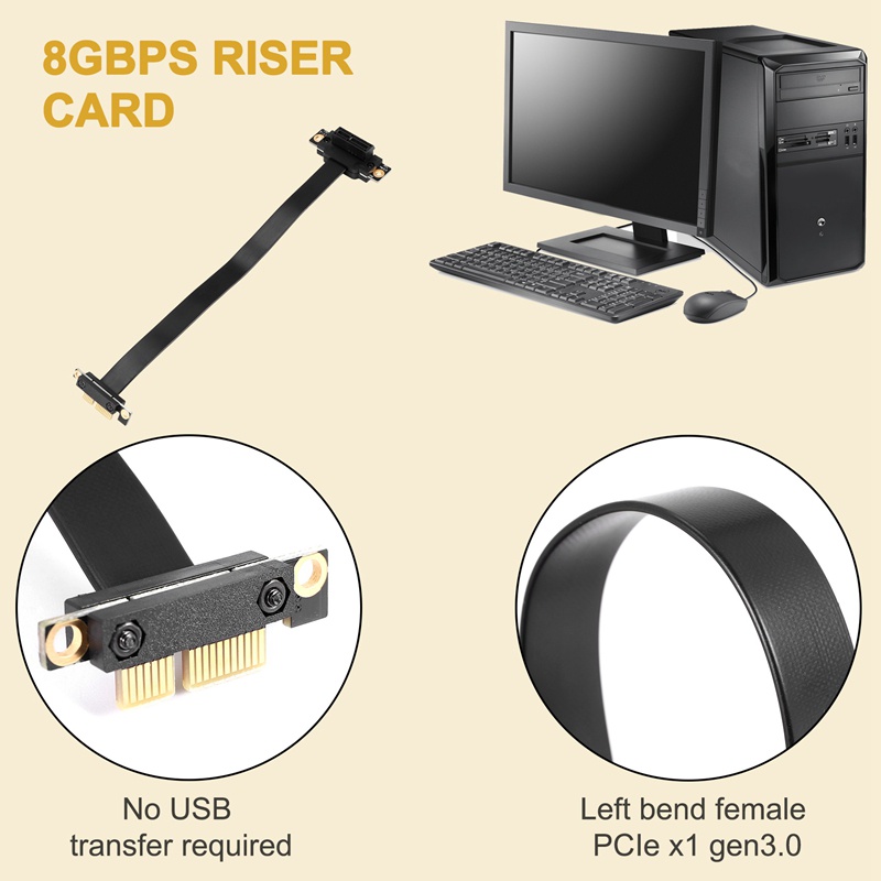 PCIE X1 Riser Cable Dual 90 Degree Right Angle PCIe 3.0 X1 to X1 Extension Cable 8Gbps PCI Express 1X Riser Card 20cm
