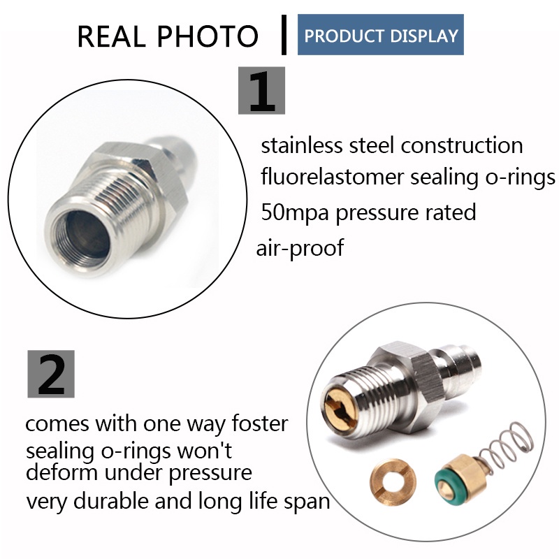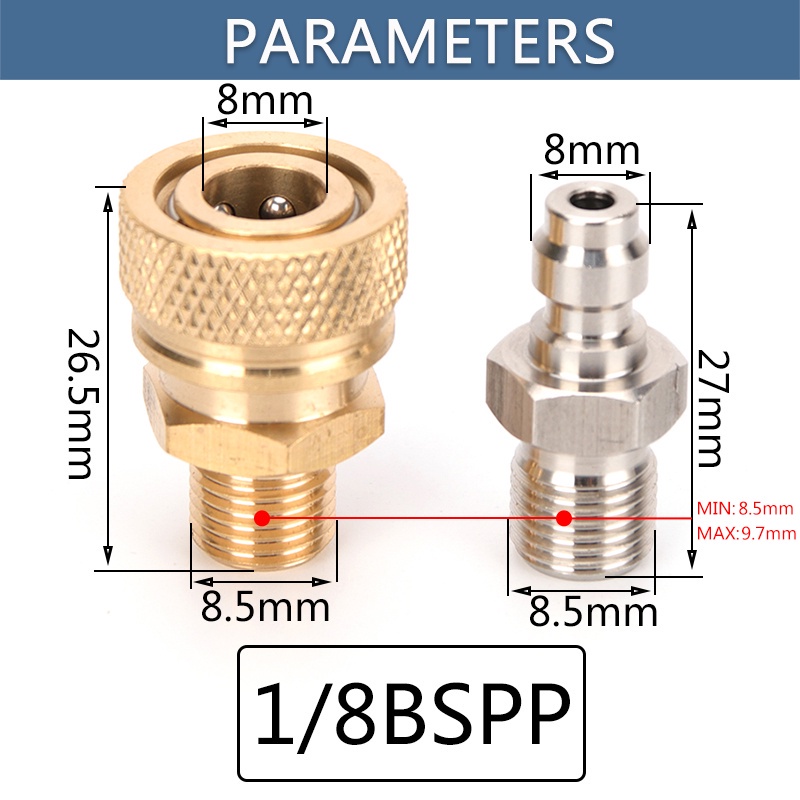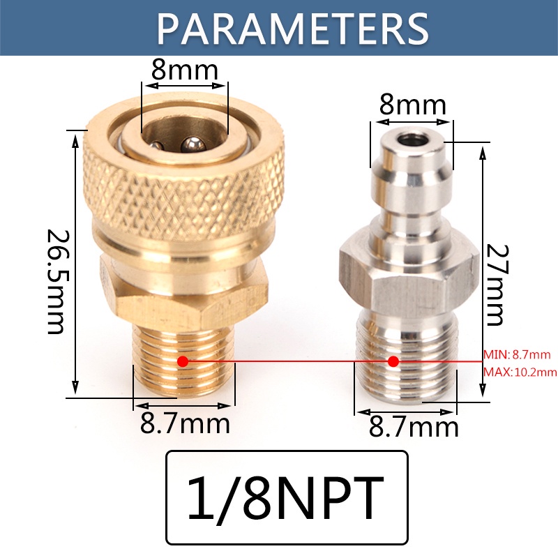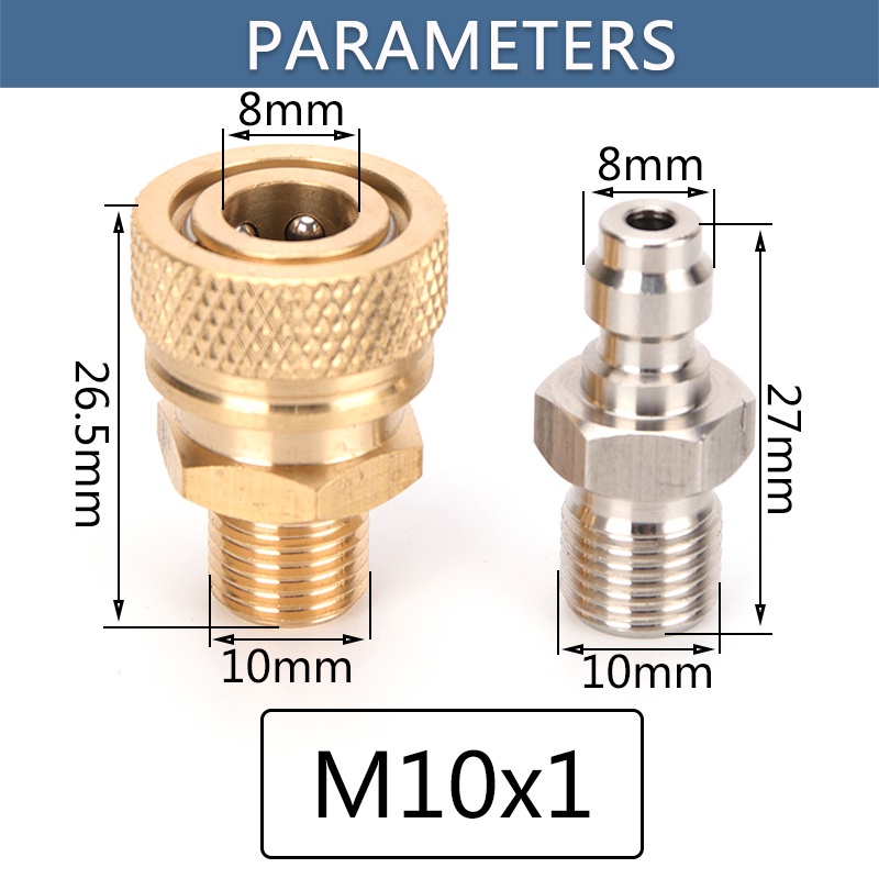 PCP High Pressure Male Quick Disconnect Fittings and Couplers Set 1/8NPT Male Plug Air Refilling M10x1 1/8BSPP 4500psi 2pcs/set