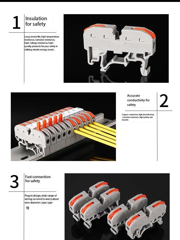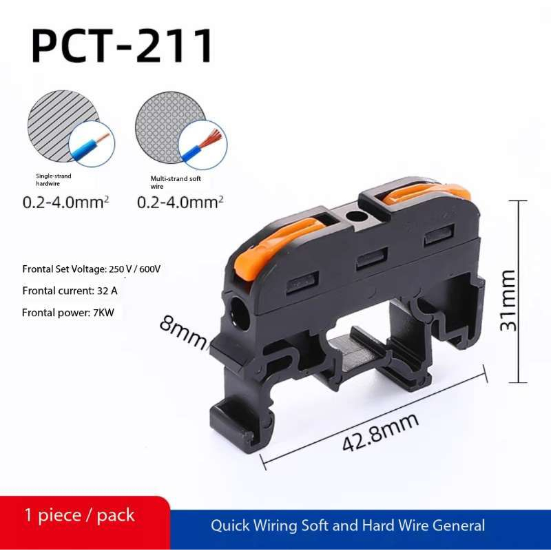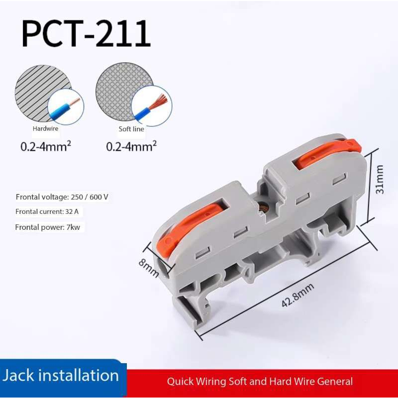 PCT 211, 222, 233 Gray Black din rail fast connection terminal press wire conductor