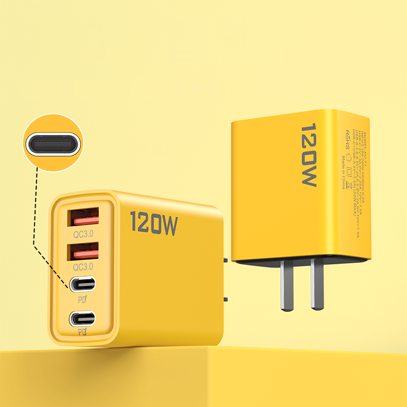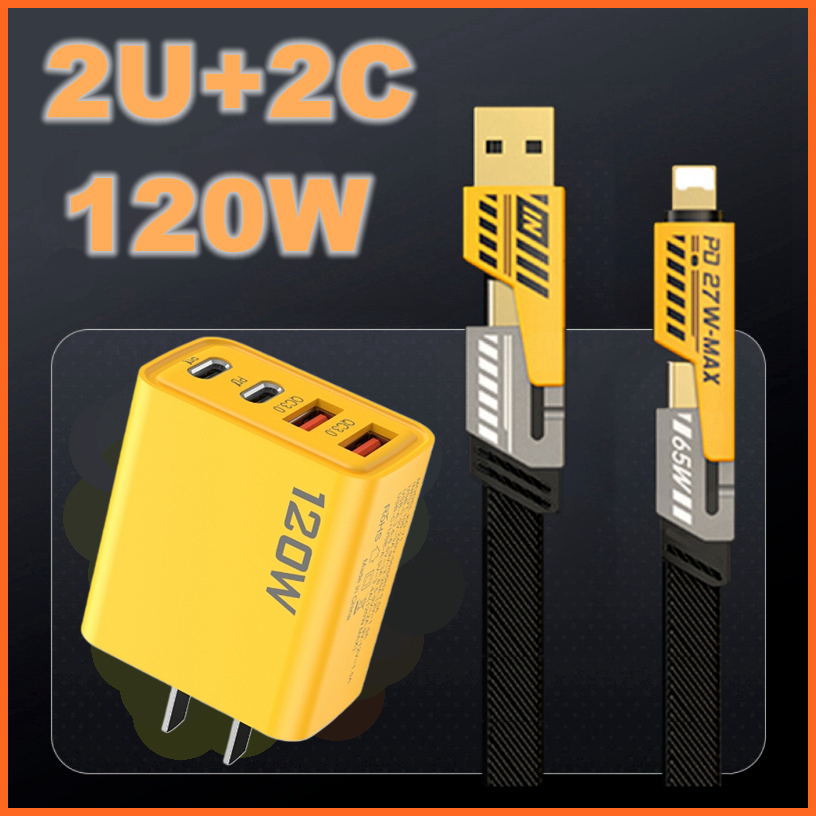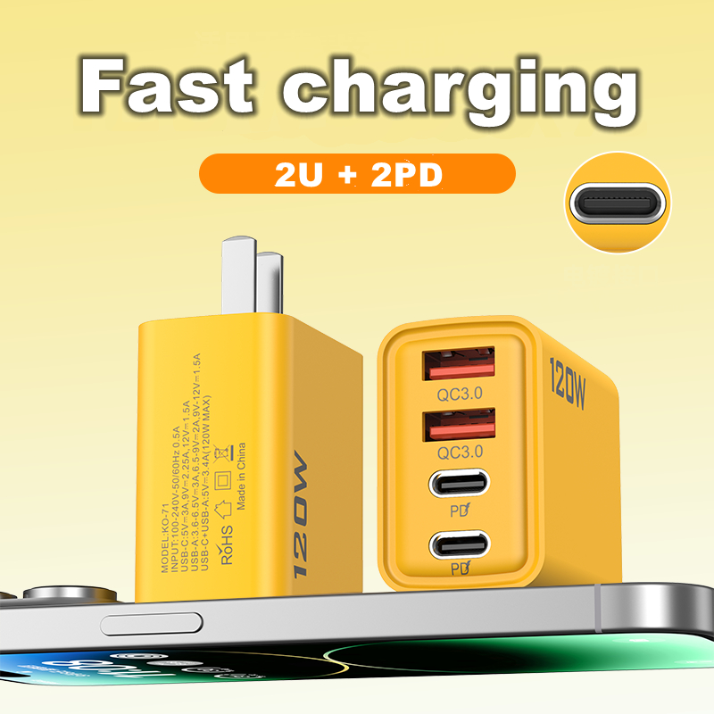 PD 120W USB C Chargers 2 PD Type C and 2 USB Port Super Fast Charging Mobile Phone Home Plug Travel