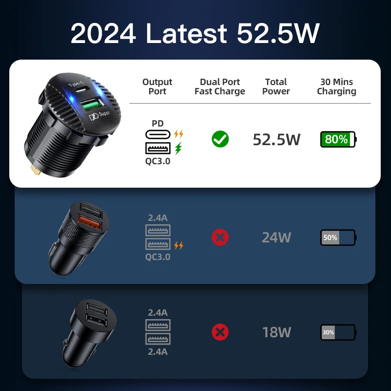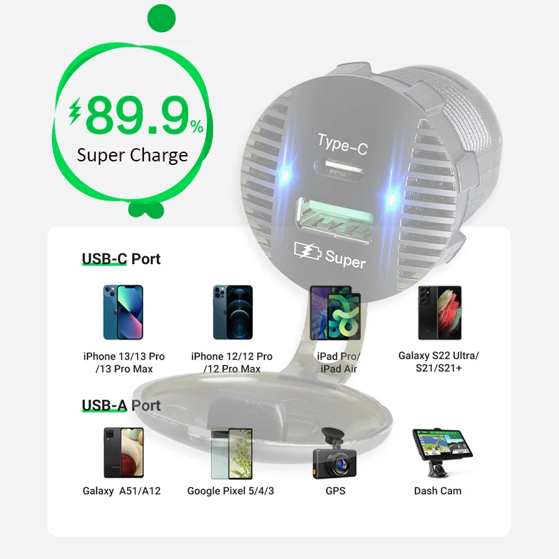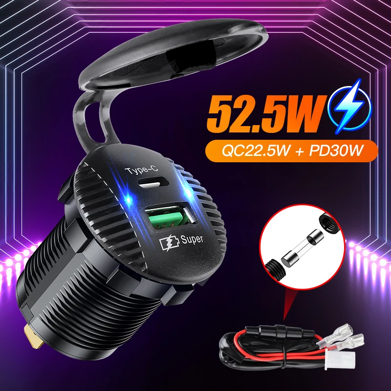 PD Type C Dual Port USB Phone Charger adapter 66W Max Super Fast Charging For Car motorhome Boat Moto Accesories