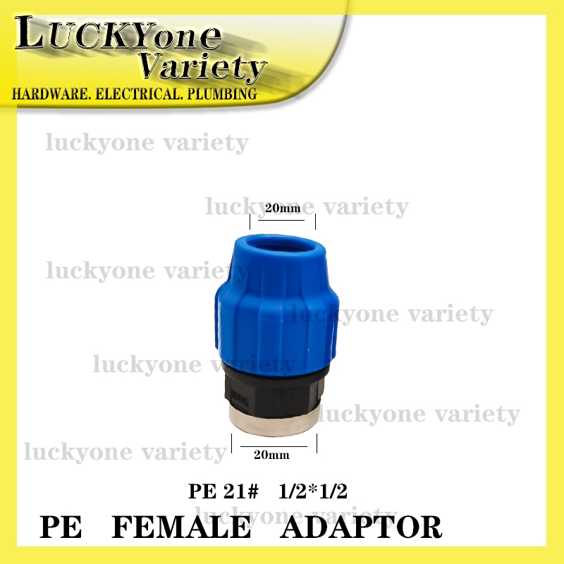 PE COMPRESSION PIPE FITTINGS FEMALE ADAPTOR ( 1/2x1/2 , 3/4x3/4 , 1 ) PER PIECE