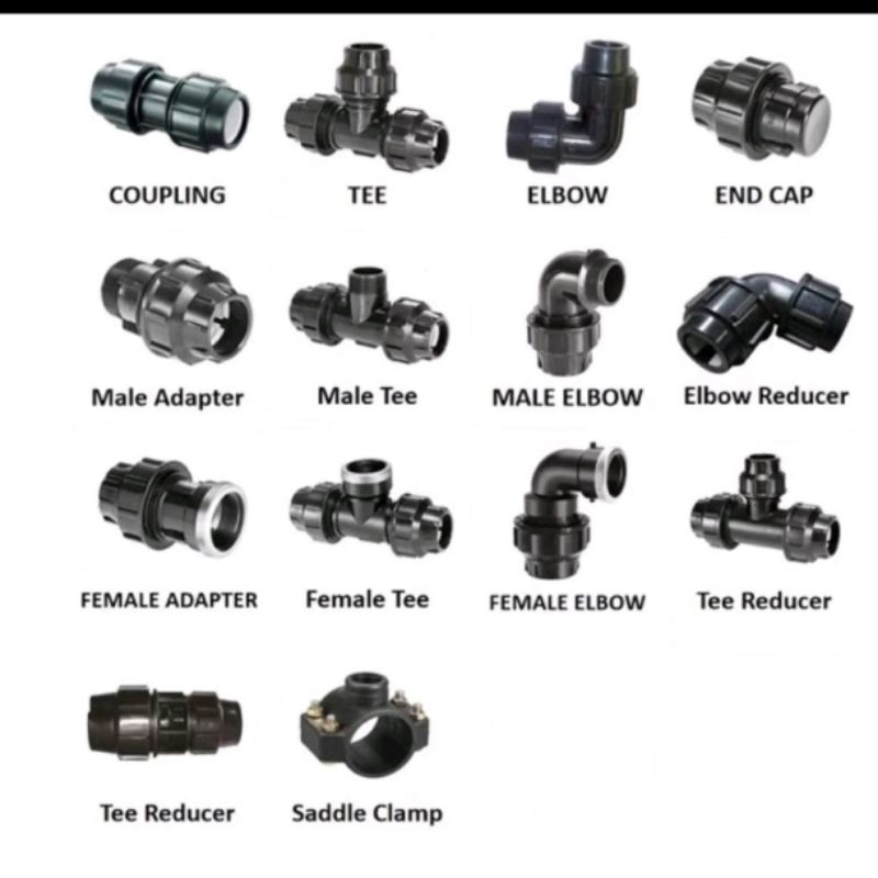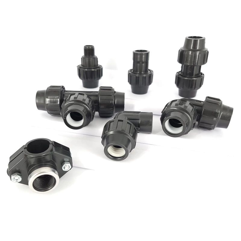 PE Compression Fittings for pe and pvc pipes 1/2" 3/4" 1" elbow tee coupling adapter plug