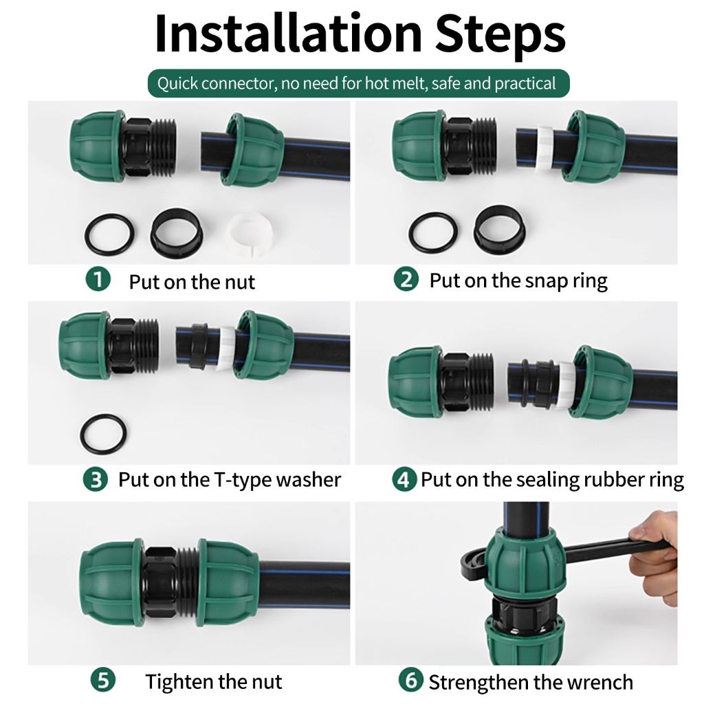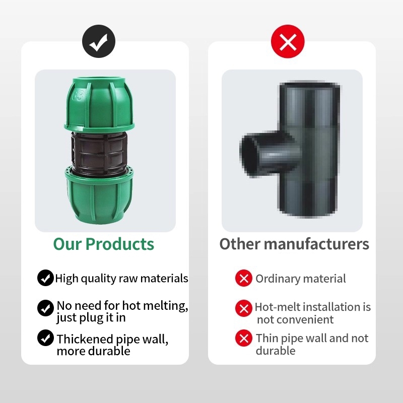 PE Compression Fittings for pe and pvc pipes elbow tee coupling adapter plug For Pe And Pvc Pipe Pla