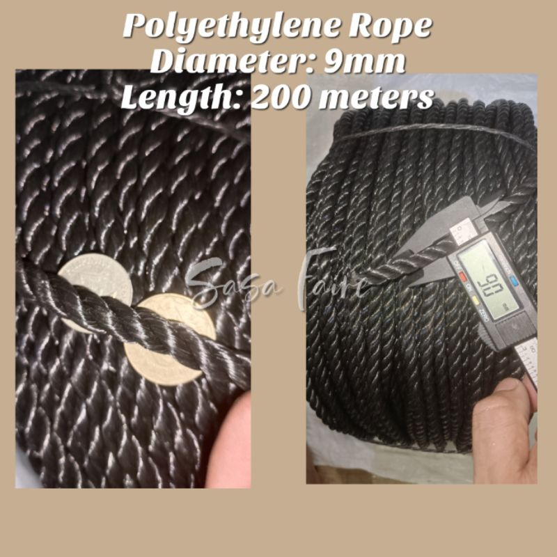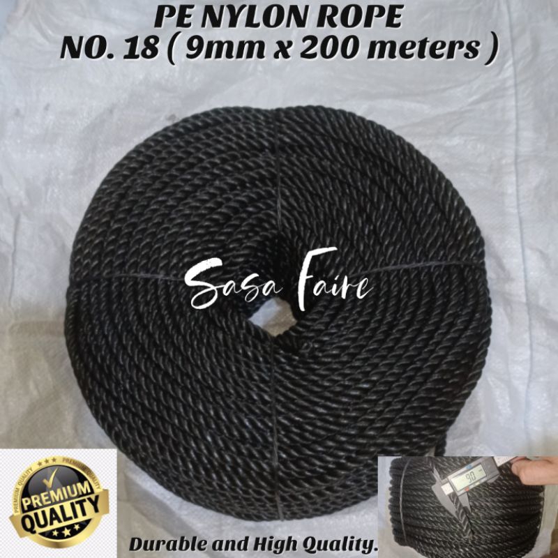 PE NYLON ROPE NO.18 ( 9mm x 200 meters) BLACK ORANGE POLYETHYLENE ROPE TALI LUBID LIFTING PISI