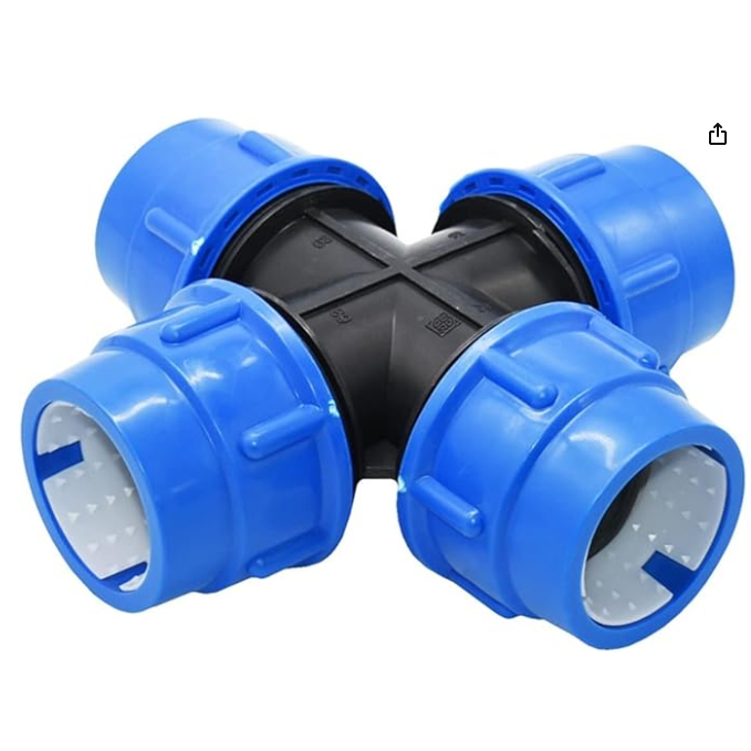 PE Pipe Cross Connector 4-Way Plastic Water Pipe Water Splitter 20mm 25mm 32mm