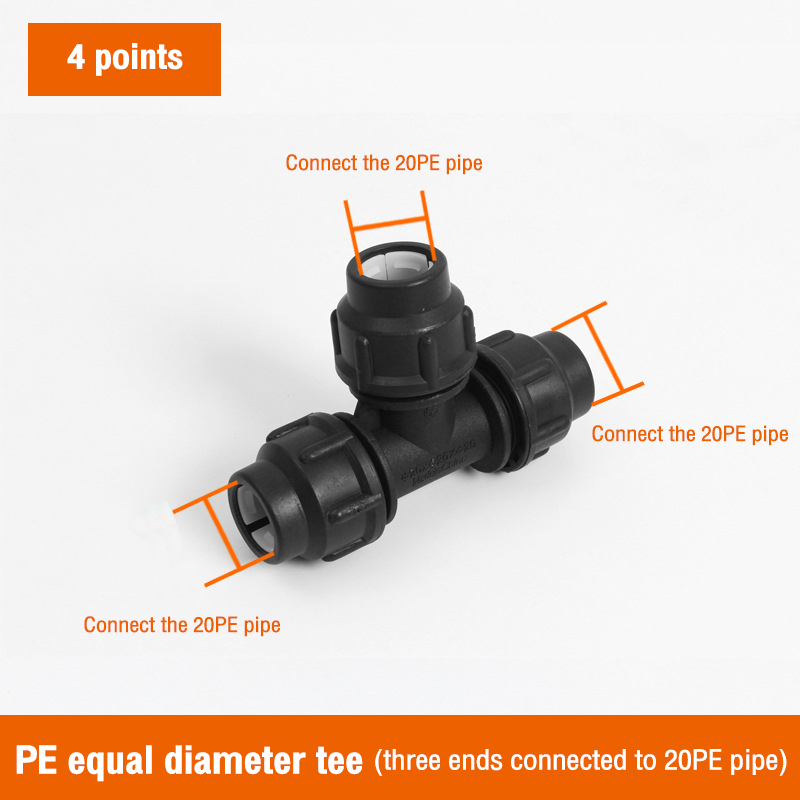 PE pipe fittings quick connection 20, 25, 32 water pipe quick coupling three-way elbow joint valve