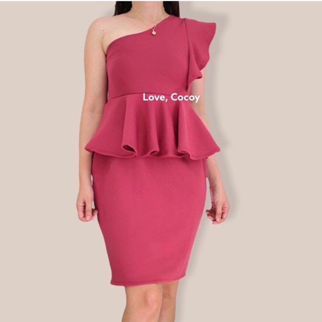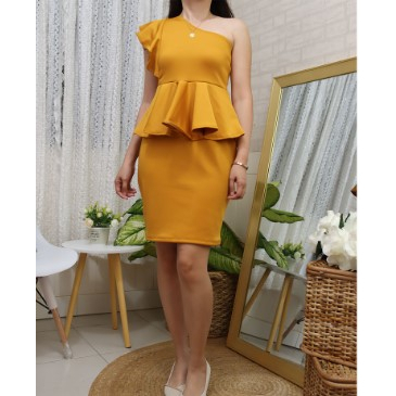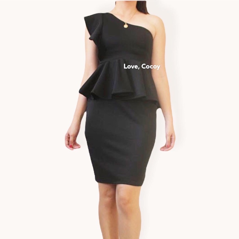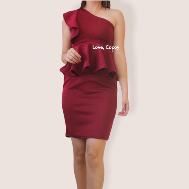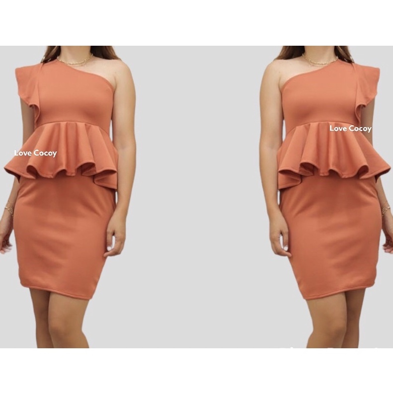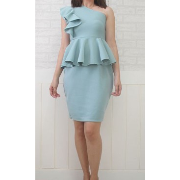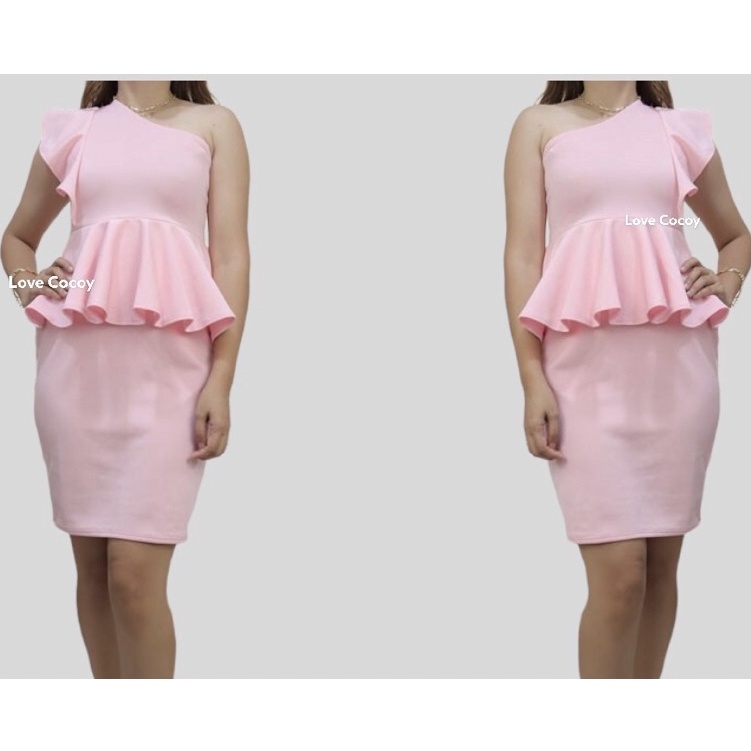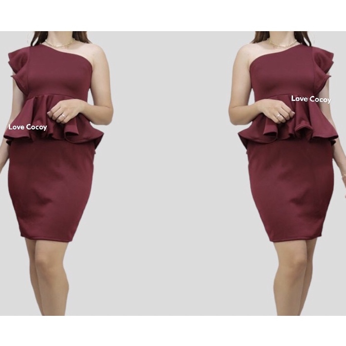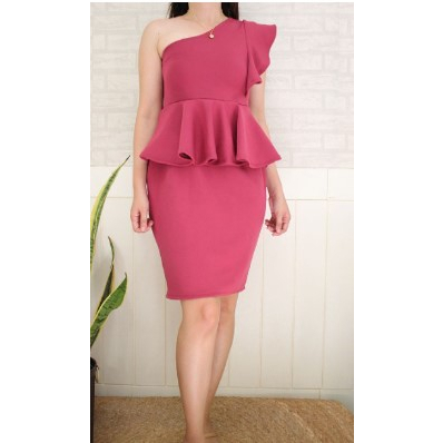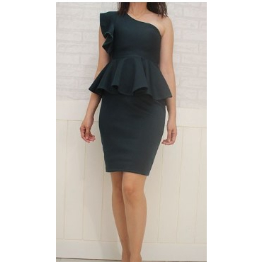 PEPLUM ONE SHOULDER RUFFLE SEMI FORMAL DRESS/SEMI FORMAL DRESS/BODYCON DRESS/PARTY DRESS/VENUS CUT