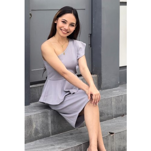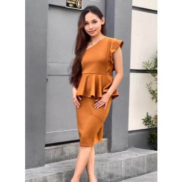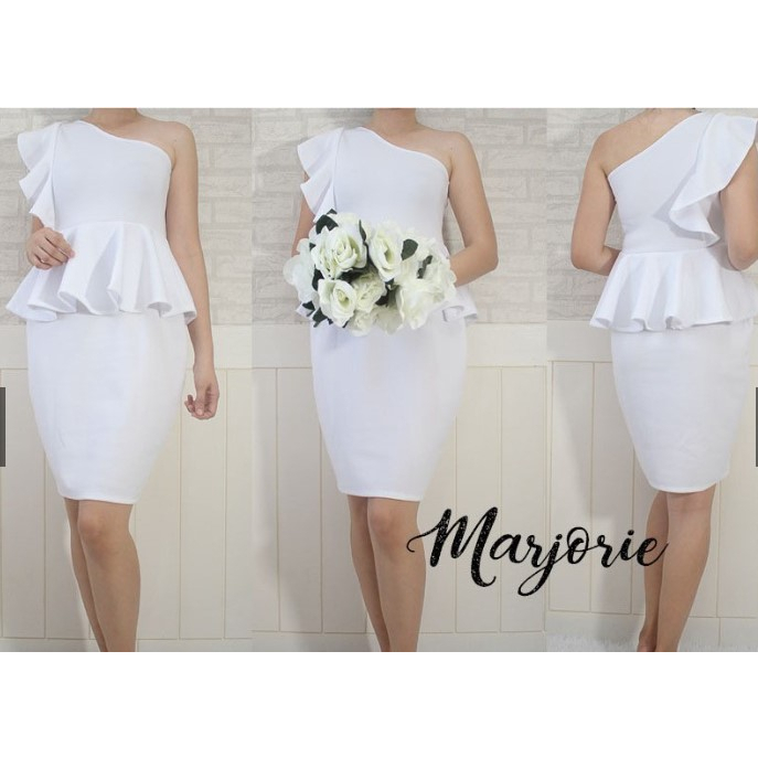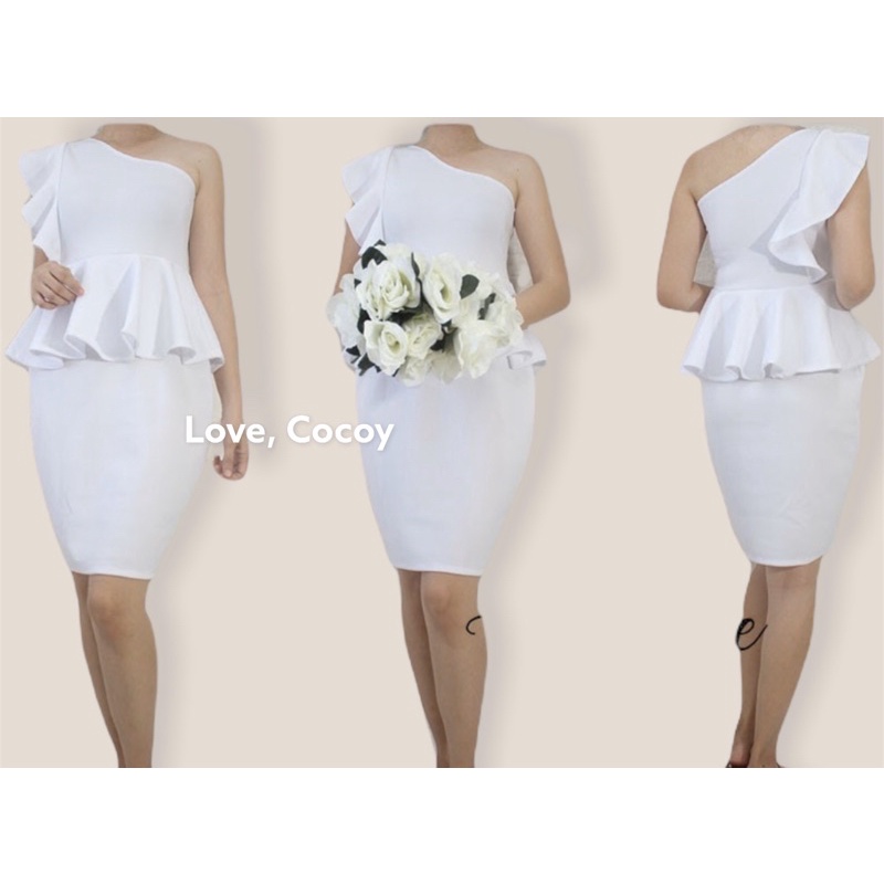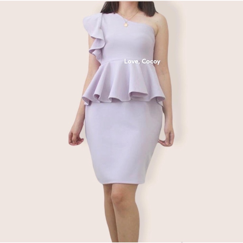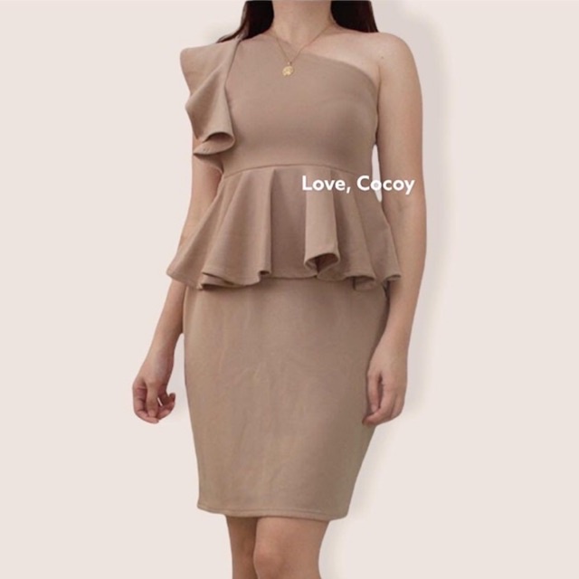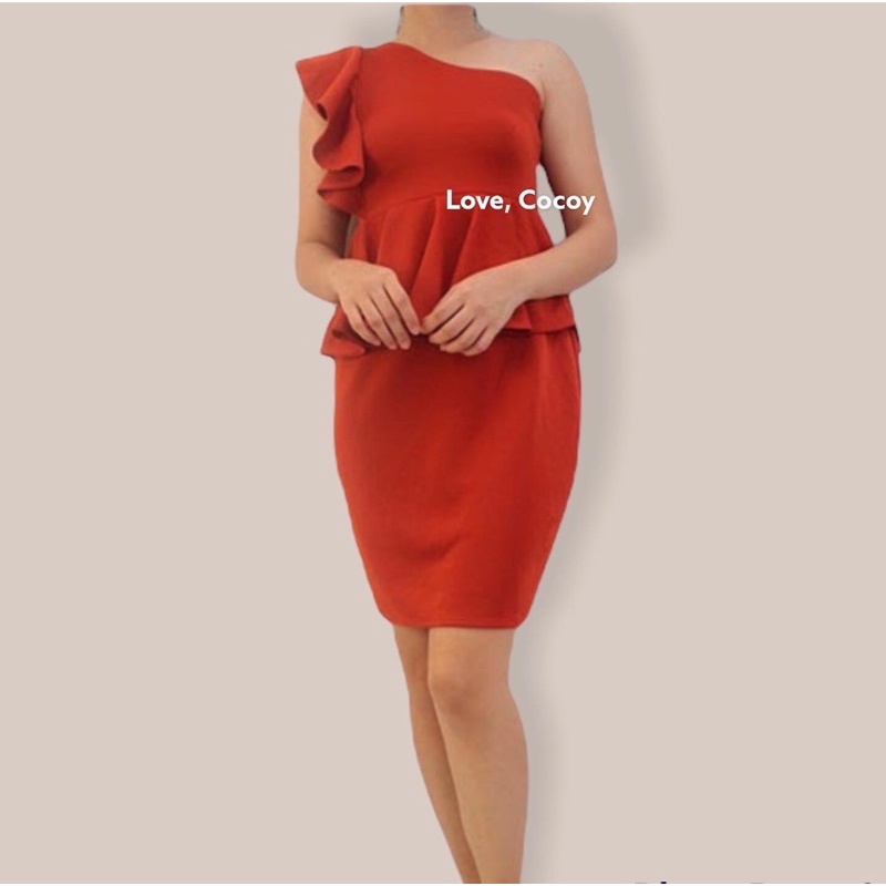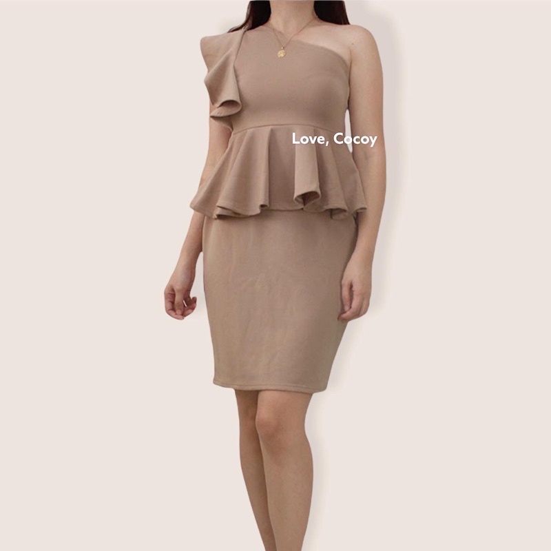 PEPLUM ONE SHOULDER RUFFLE SEMI FORMAL DRESS/SEMI FORMAL DRESS/BODYCON DRESS/PARTY DRESS/VENUS CUT