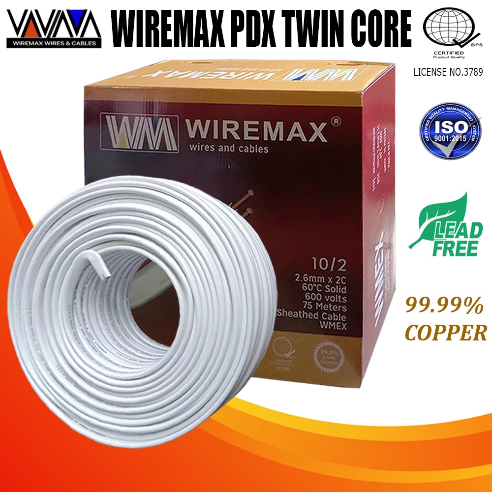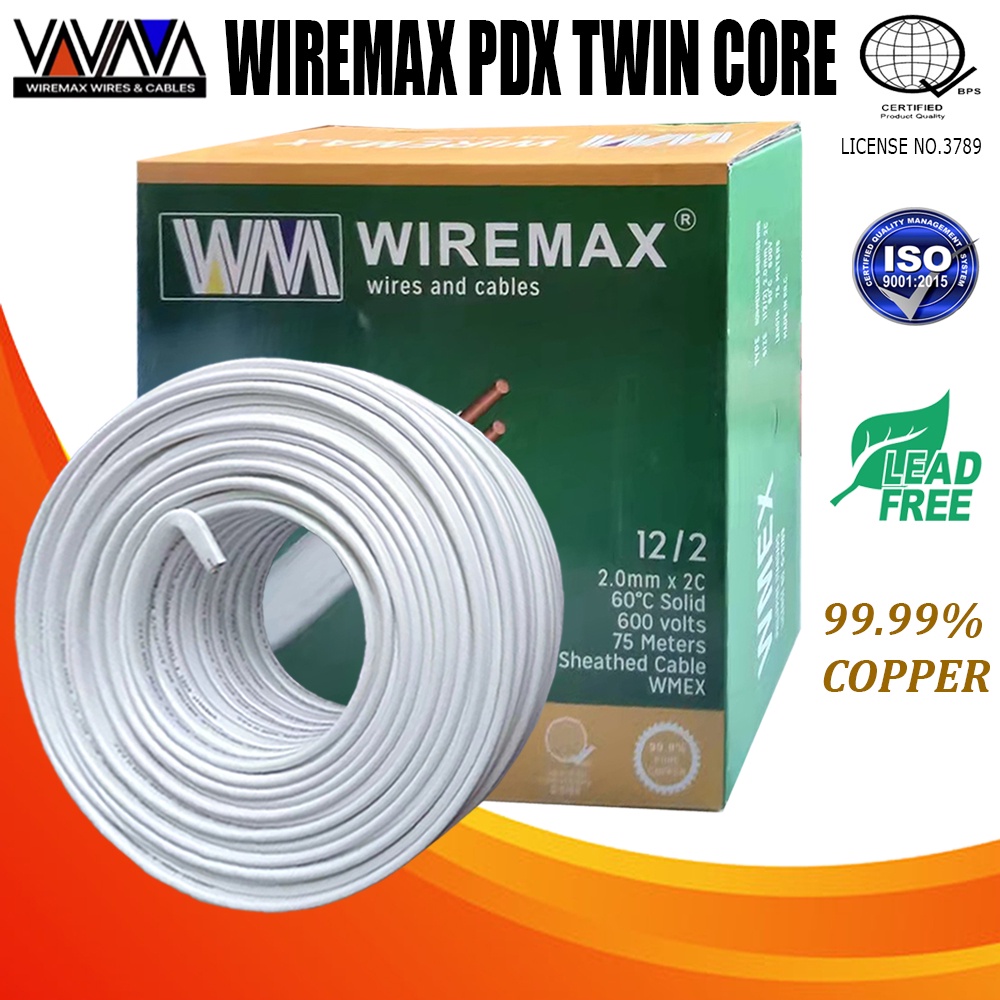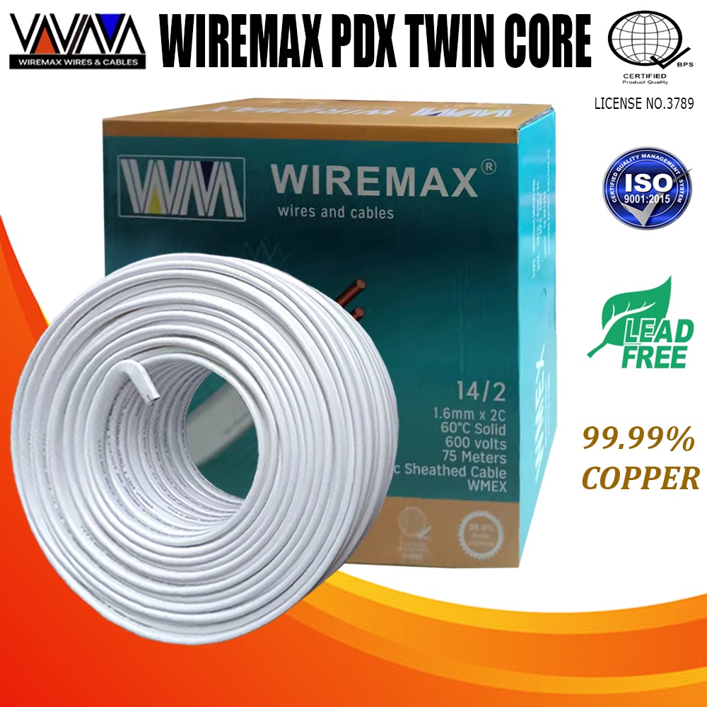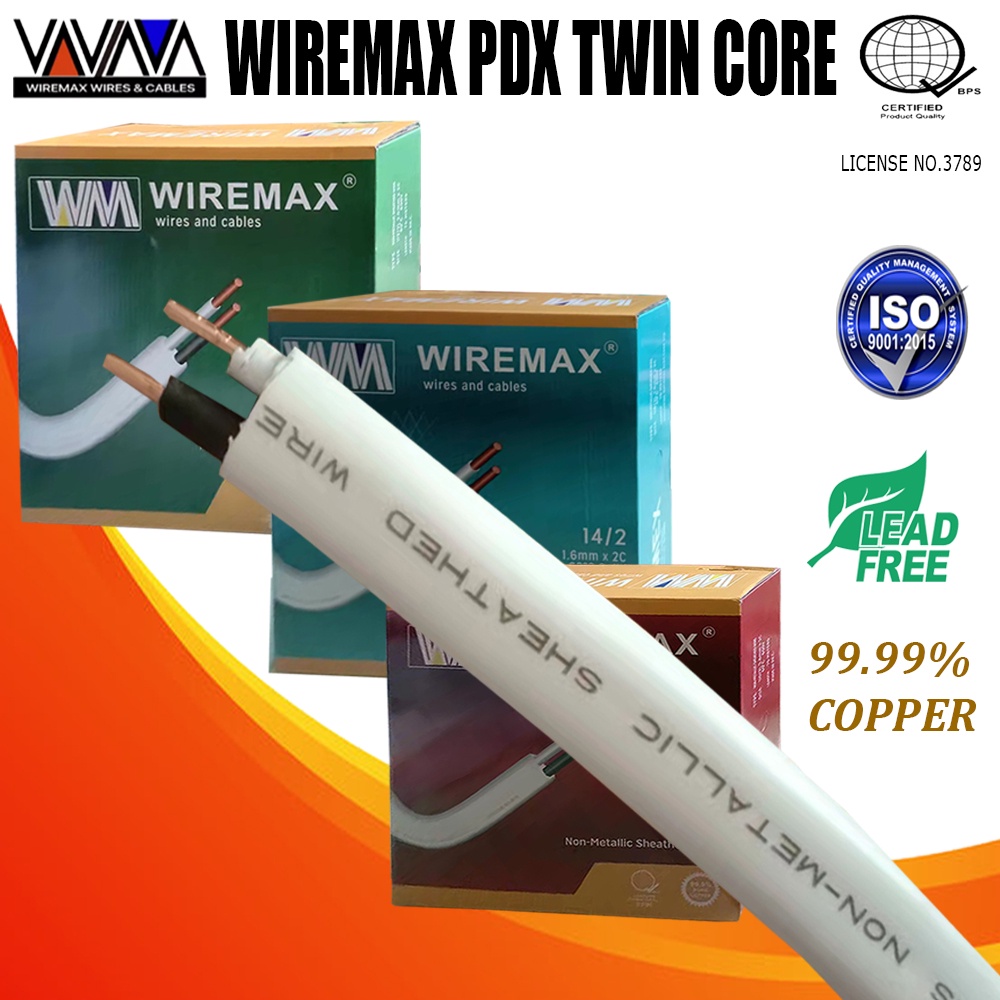WIREMAX 20M-30M PDX (NM) TWIN CORE WIRE (14/2-1.6mm 12/2-2.0mm 10/2-2.6mm x2C) PURE COPPER 99.99%