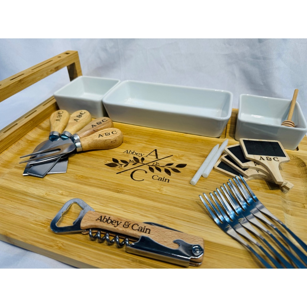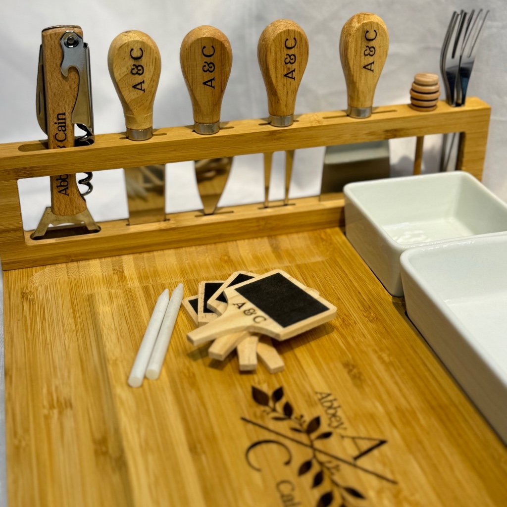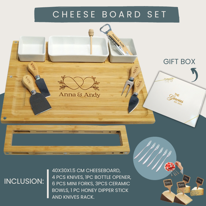 PERSONALIZED Cheeseboard Cutting Board Cheese knives Gift set Christmas giveaway Wedding gift