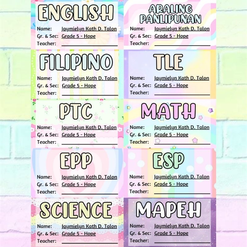 PERSONALIZED LAMINATED NAME TAGS WITH STICKER SUBJECTS