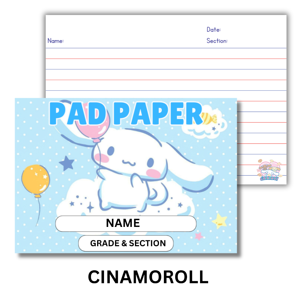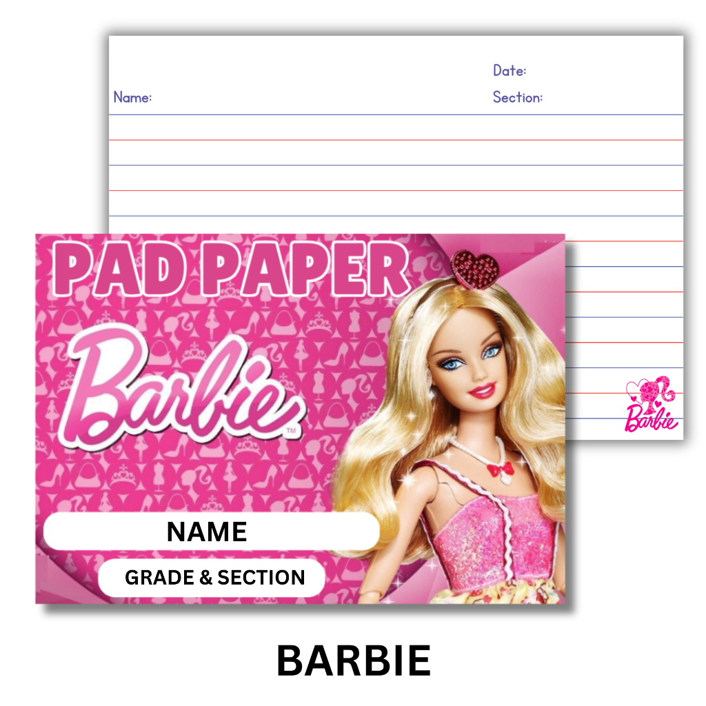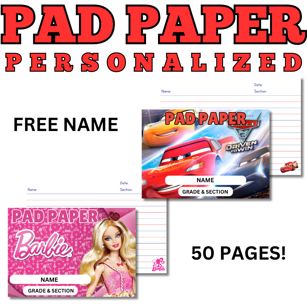 PERSONALIZED PAD PAPER FOR KINDERGARTEN, GRADE 1, 2, 3 & 4! WITH CHARACTERS KUROMI BARBIE SPIDERMAN