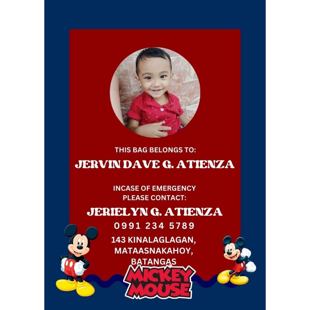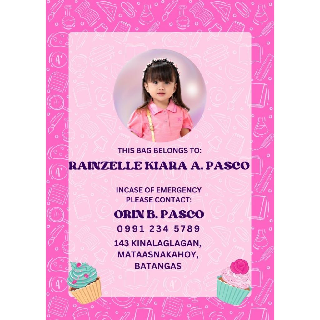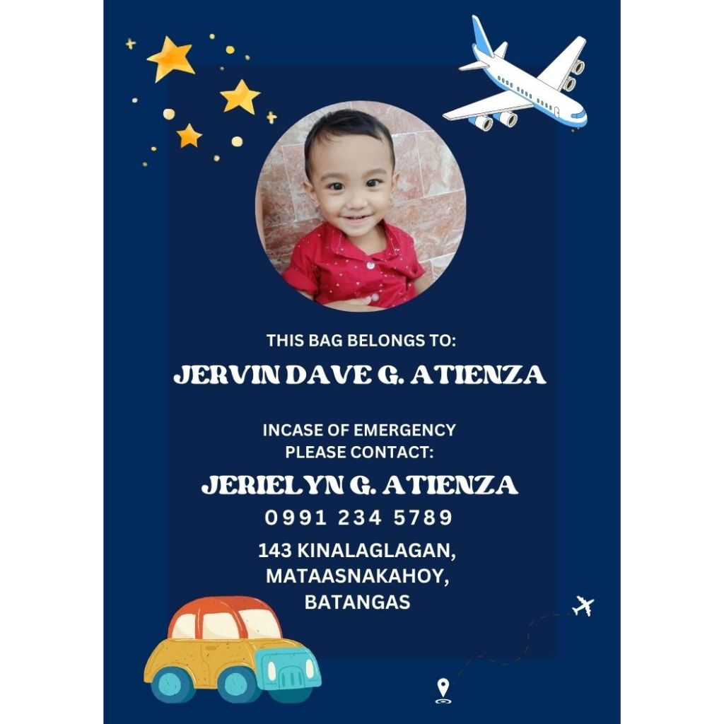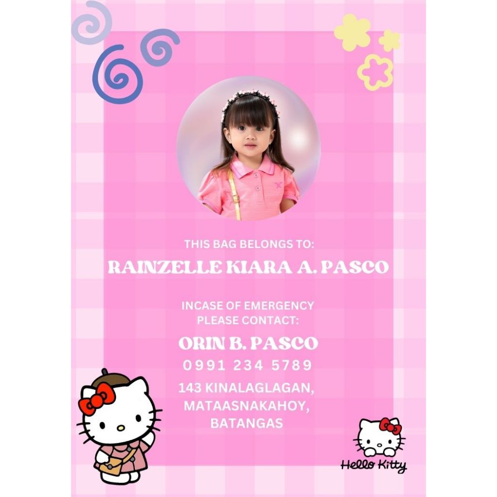PERSONALIZED PVC/LAMINATED BAG TAG FOR KIDS (WITH FREE RUBBER LOOPS)