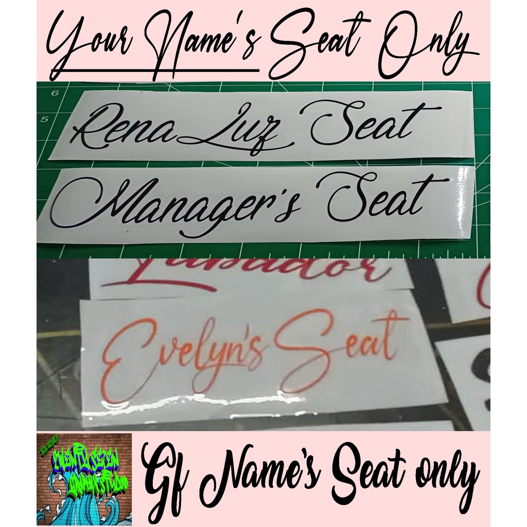 PERSONALIZED YOUR NAME'S SEAT ONLY VINYL CUT OUT STICKER 100% WEATHERPROOF