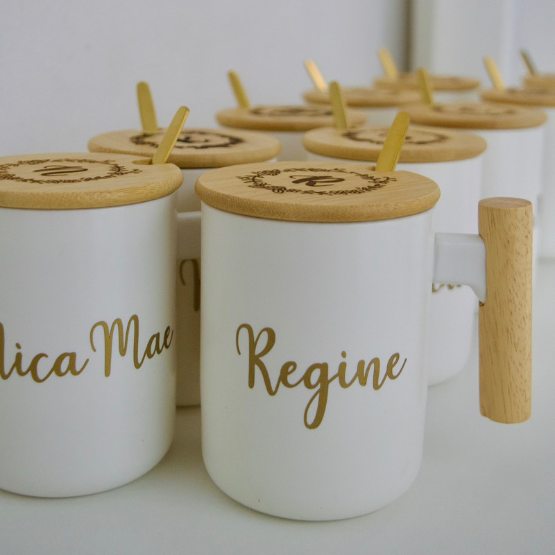 PERSONALIZED nordic style coffee mug with bamboo lid.
