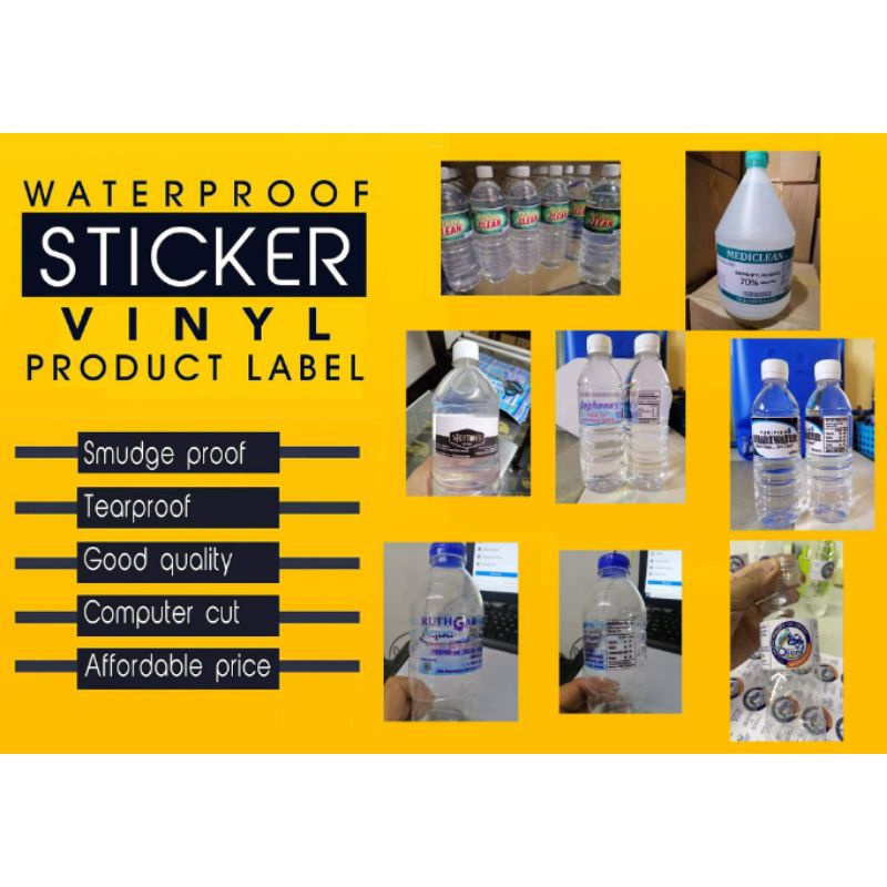 PET BOTTLE WATERPROOF STICKER CLEAR/WHITE VINYL (350ml,500ml,1000ml) 100's/set