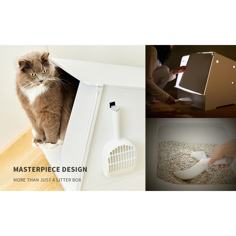 PETKIT White Villa Semi-Enclosed Cat Litter Box with Litter Scoop Ventilated Litter Box for Cats
