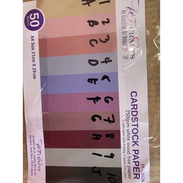 PF CRAFTS Cardstock paper board 250gsm 10colors 5pcs per color per pack