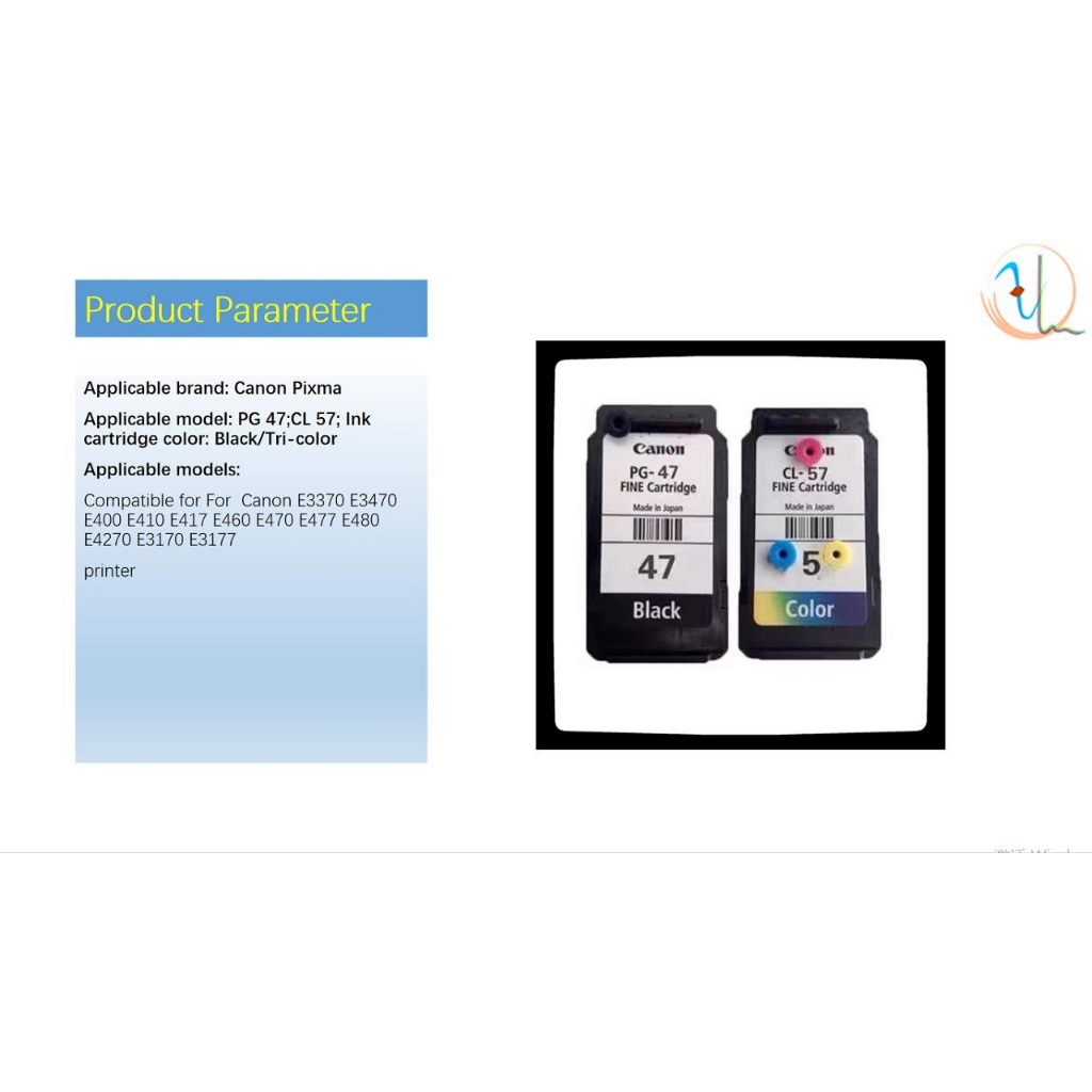 PG 47 CL 57 Refillable (CL-57 CL57S) PG47 CL57S Ink Cartridges for Canon E3370 E3470 E400 E410 E417 E460 E470 E477 continuous supply