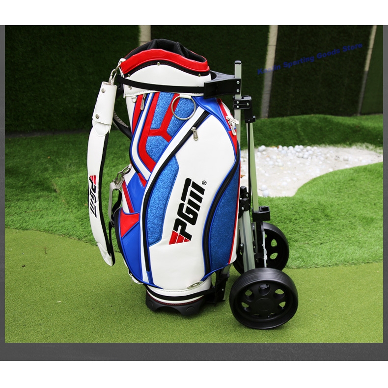 PGM golf cart, two wheeled driver pulled cart, golf course handcart, foldable golf cart