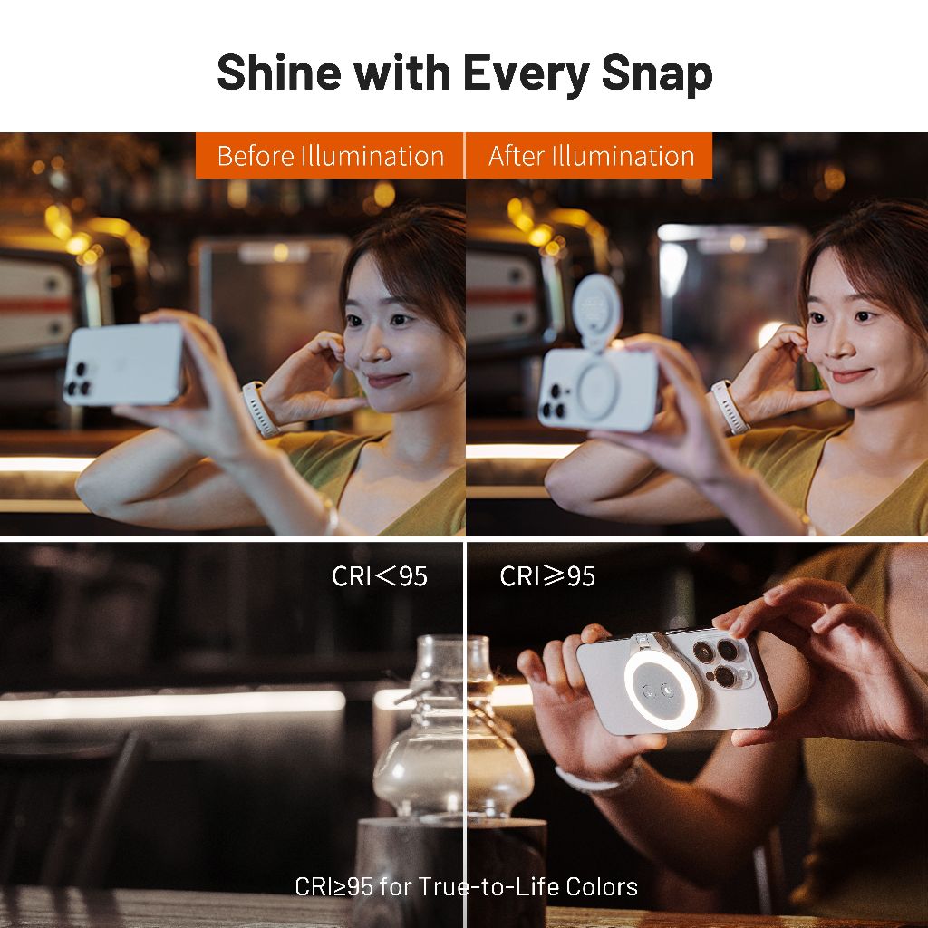 PGYTECH MagGlow Phone Fill Light --- MagSafe Selfie Light Portable LED Magnetic Ring Light with Cool Light/Soft Light/Warm Light For Selfies/Photography/Video