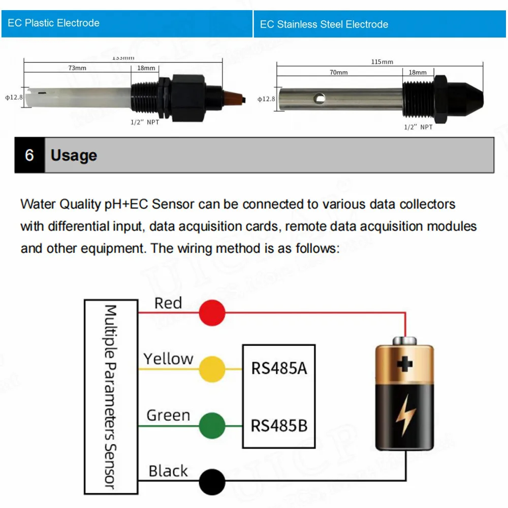 PH Sensor Industrial Water Quality Turbidity Tester ORP Electrode Probe EC Transmitter pH Meter Environmental Detection