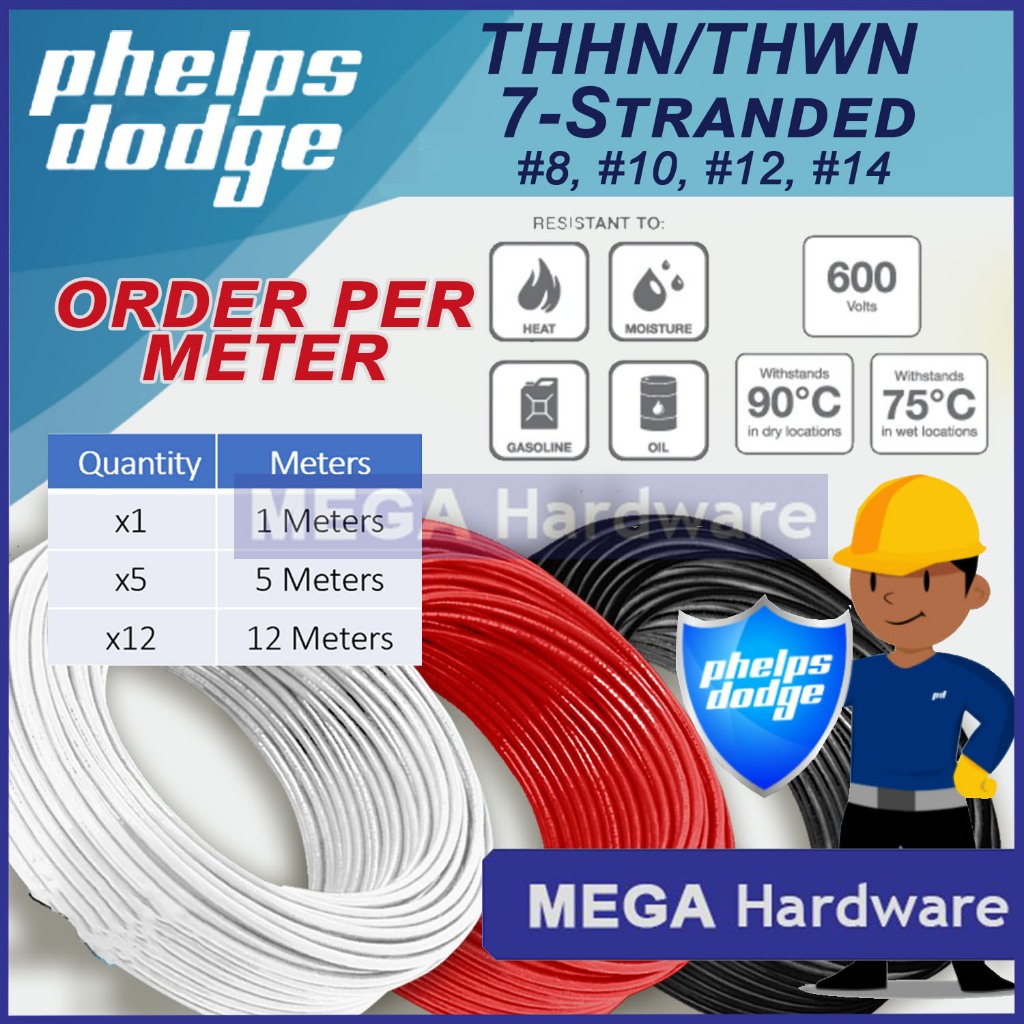 PHELPS DODGE PD THHN/THWN-2 2.0mm2, 3.5mm2, 5.5mm2, 8.0mm2 Stranded Wire (# 8, 10, 12, 14) BY METER