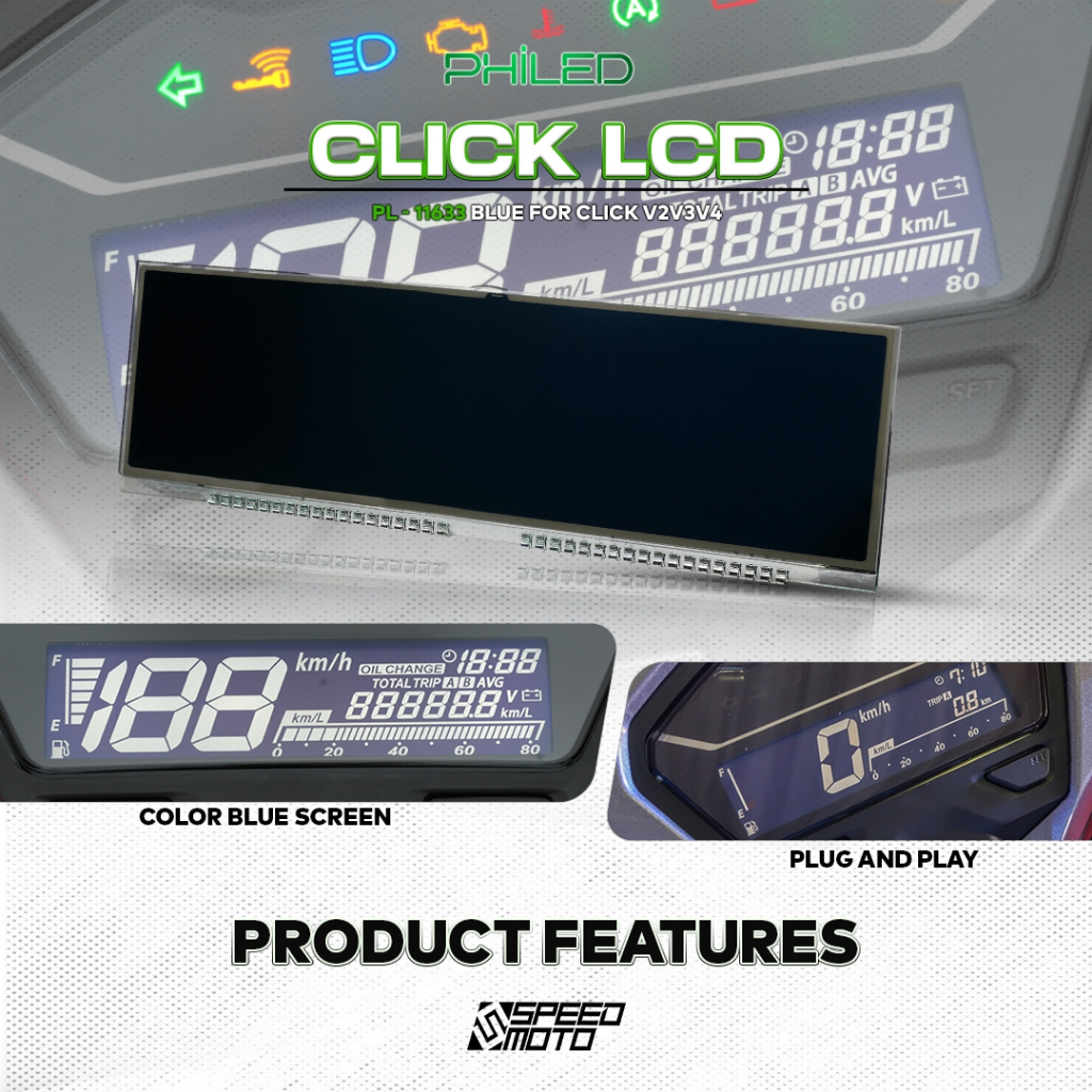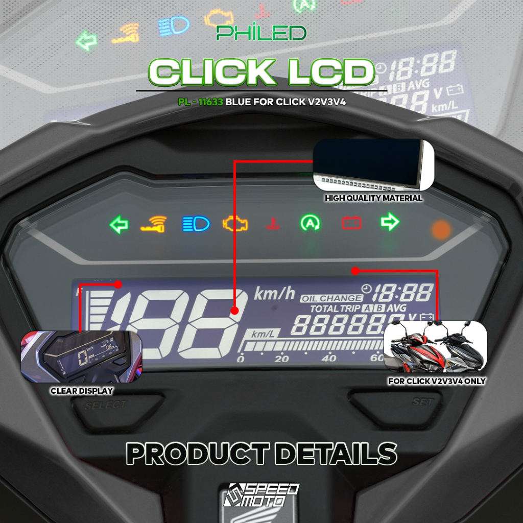 PHILED HONDA CLICK V2/V3/V4 LCD BLUE DISPLAY PL-11633 SPEEDOMETER PANEL GAUGE FOR CLICK V2/V3/V4