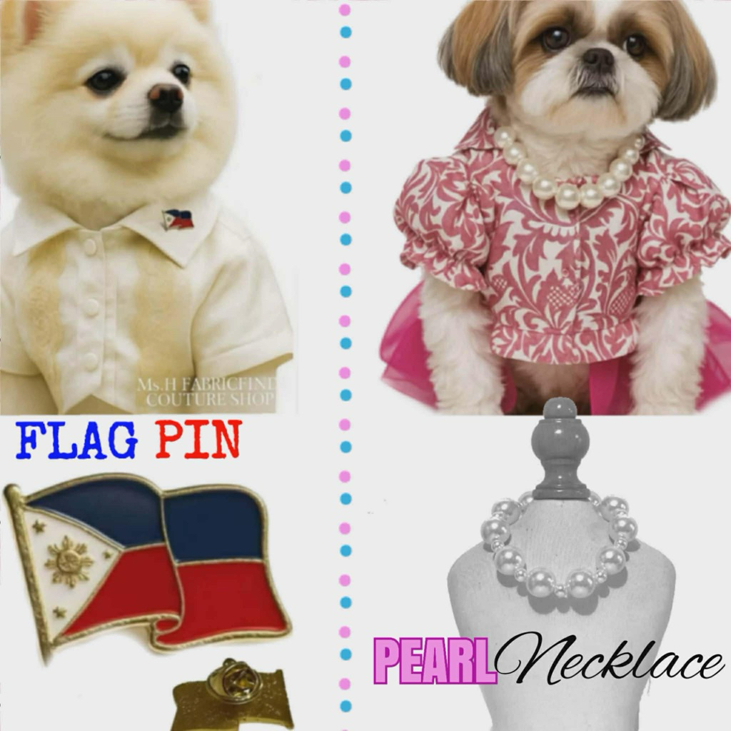 PHILIPPINE FLAG PIN /DOG BARONG PIN/ PEARL DOG NECKLACE/ DOG NECKLACE