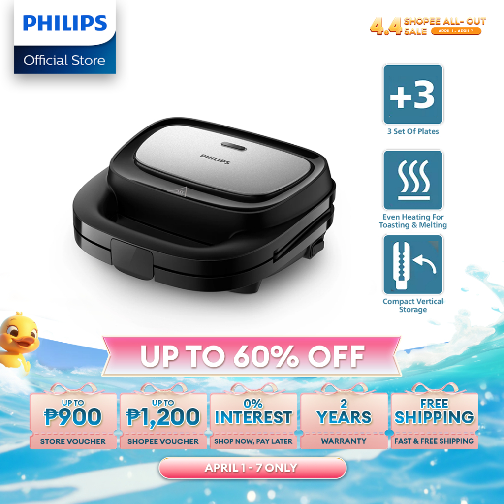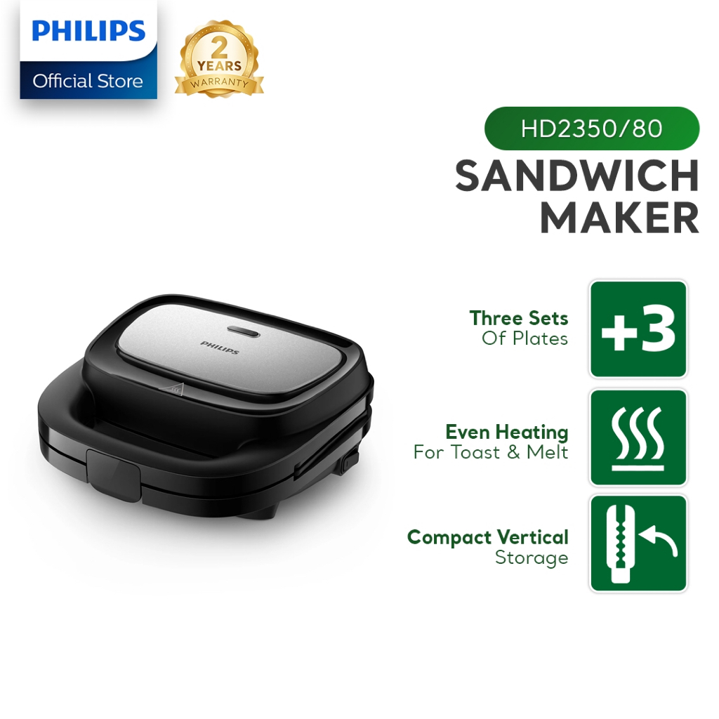 PHILIPS Sandwich Maker HD2350/80 With 3 Different Plate Sets for Panini, Waffle and Sandwich