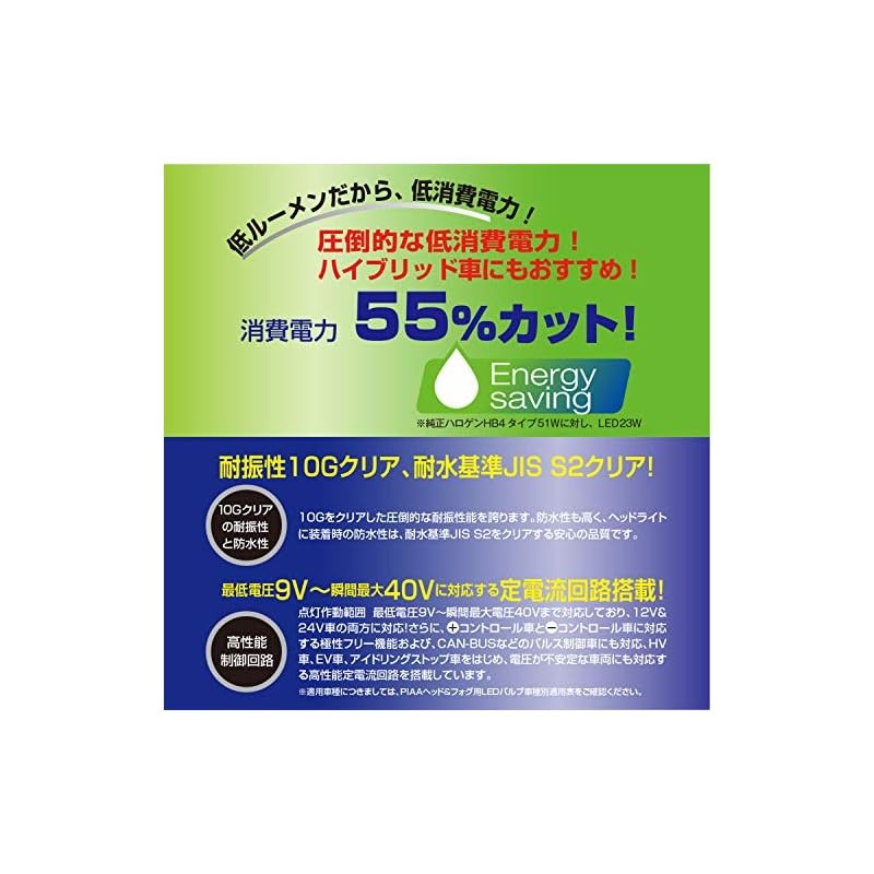 PIAA LED Bulb for Headlight / Fog Light HB3 / HB4 / HIR1 / HIR2 6000K 58000cd 6500lm equivalent* Car inspection compatible 12V/24V 23W premium long beam for high speed driving LEH121