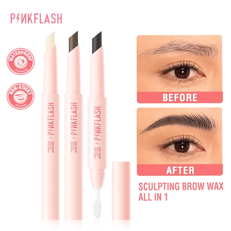 PINKFLASH 2-in-1 Waterproof Sculpting Brow Wax with Brush Brow Styling Soap Eyebrow Clear 3 Colors
