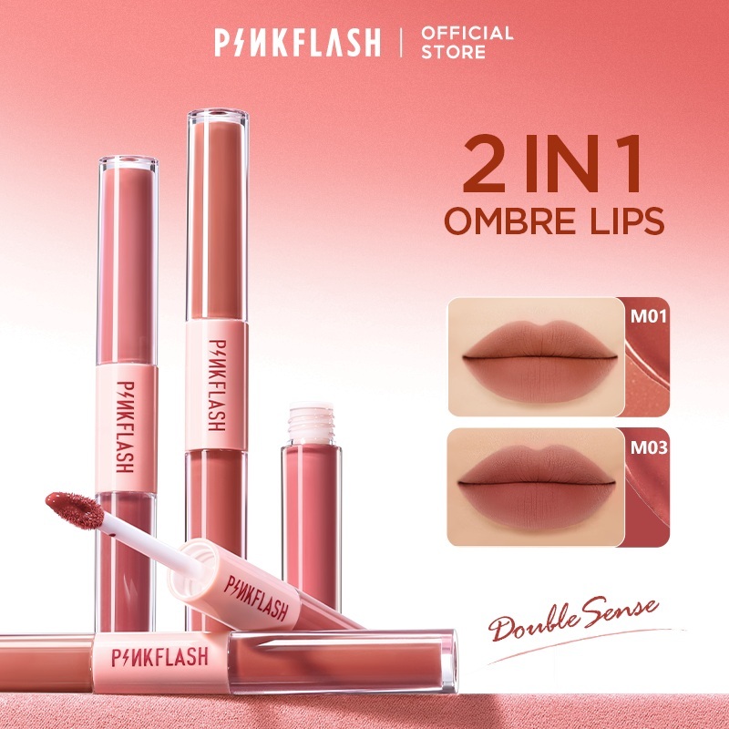 PINKFLASH Ombrelips 2 In 1 dual-ended lipstick duo lipstick liquid matte lipstick velvet lip tint lightweight high pigment lasting beauty Natural Makeup cruelty-free #DoubleSense