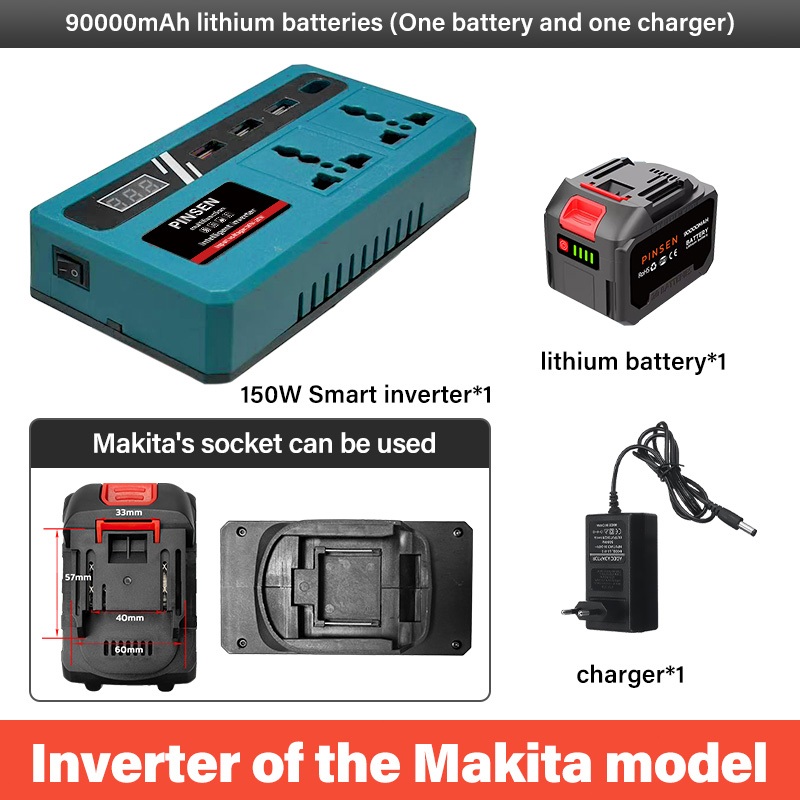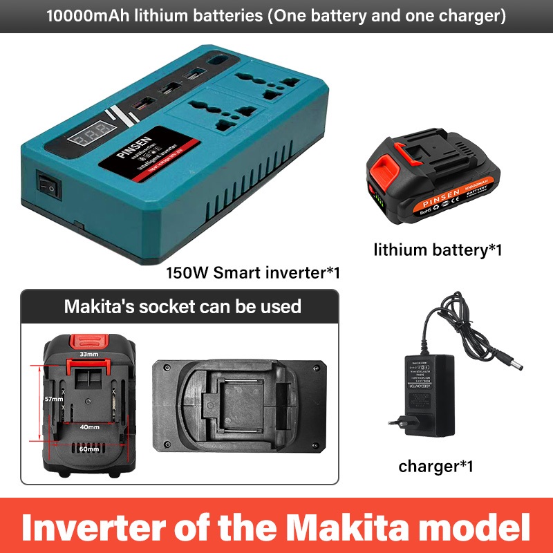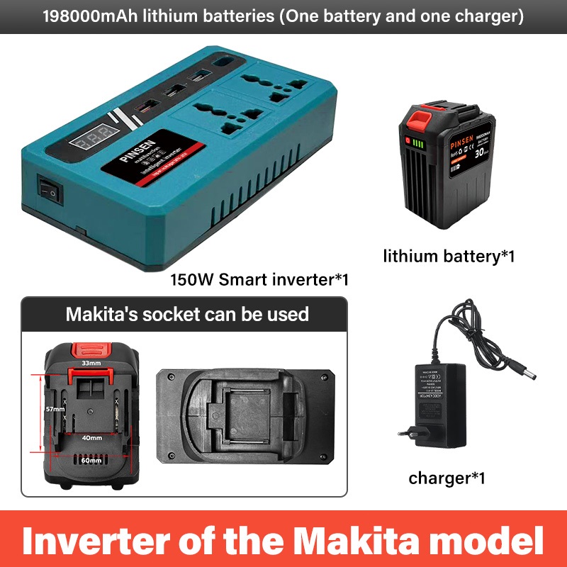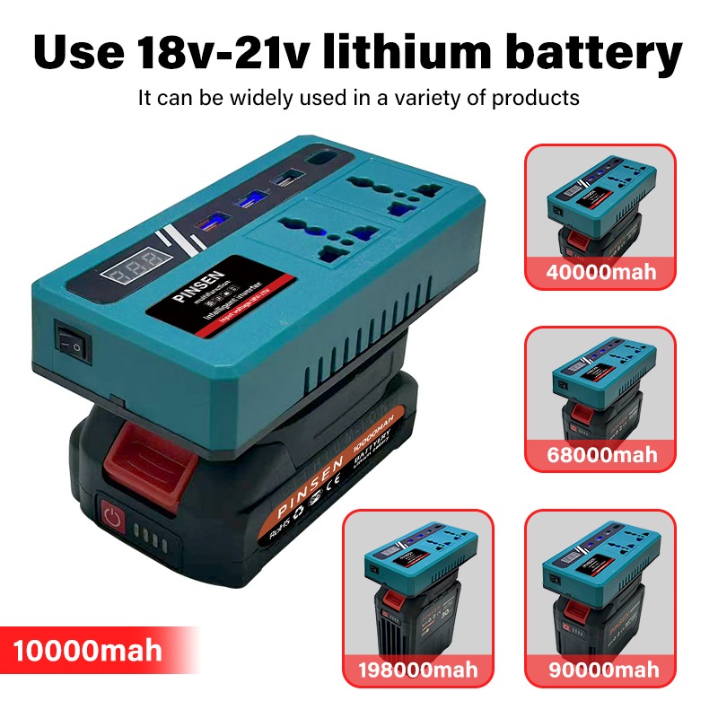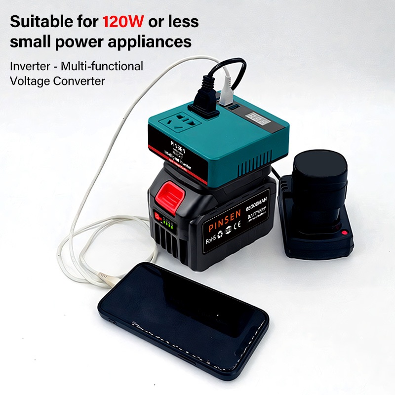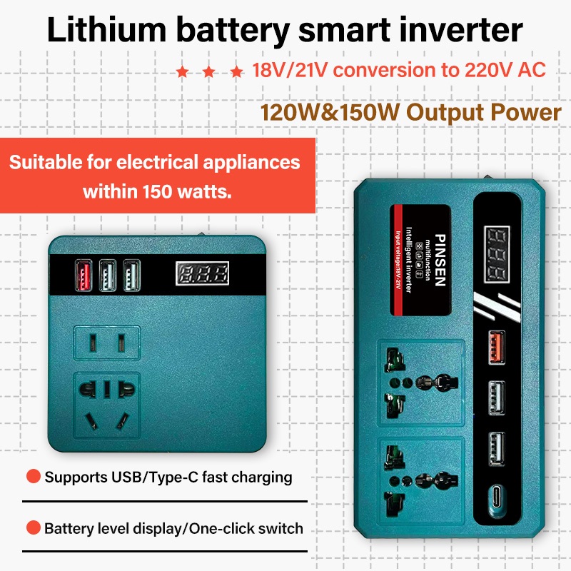 PINSEN Lithium Battery Smart Inverter 18V/21V to 220V AC 150W USB/Type - C Mabilis na Pag - charge