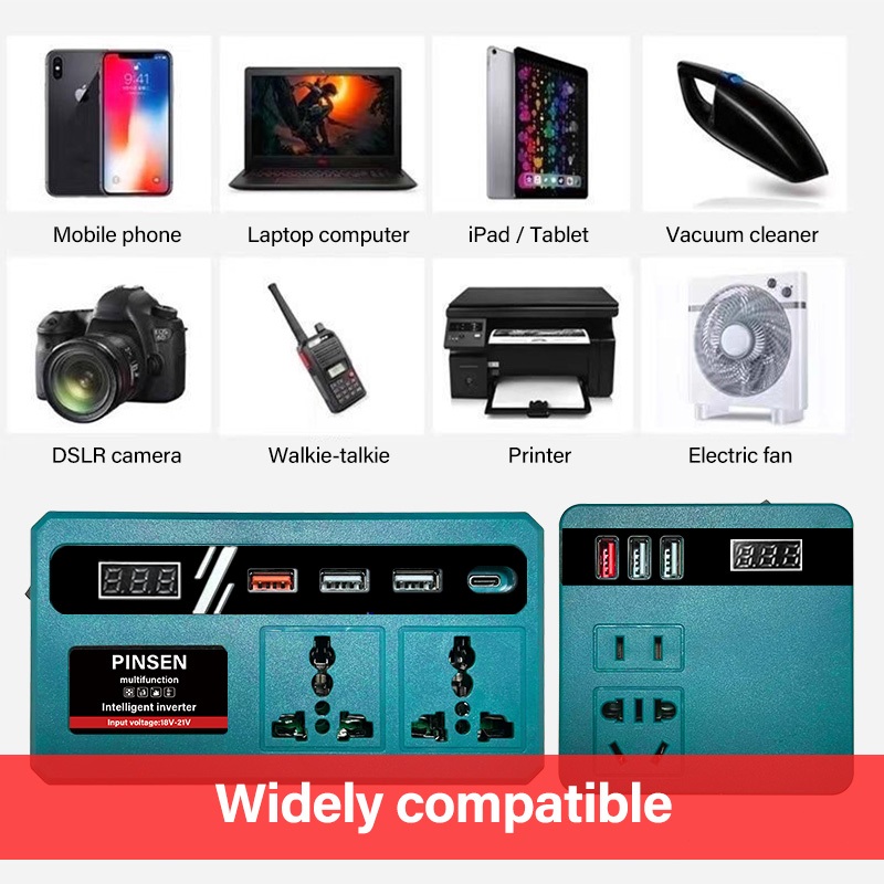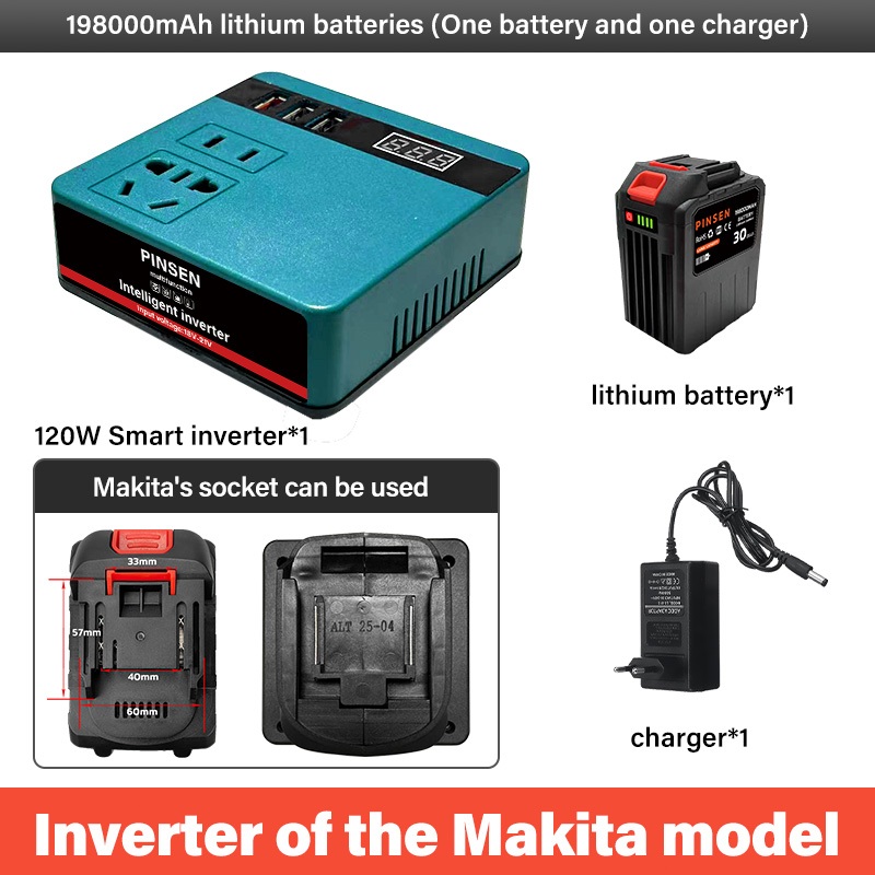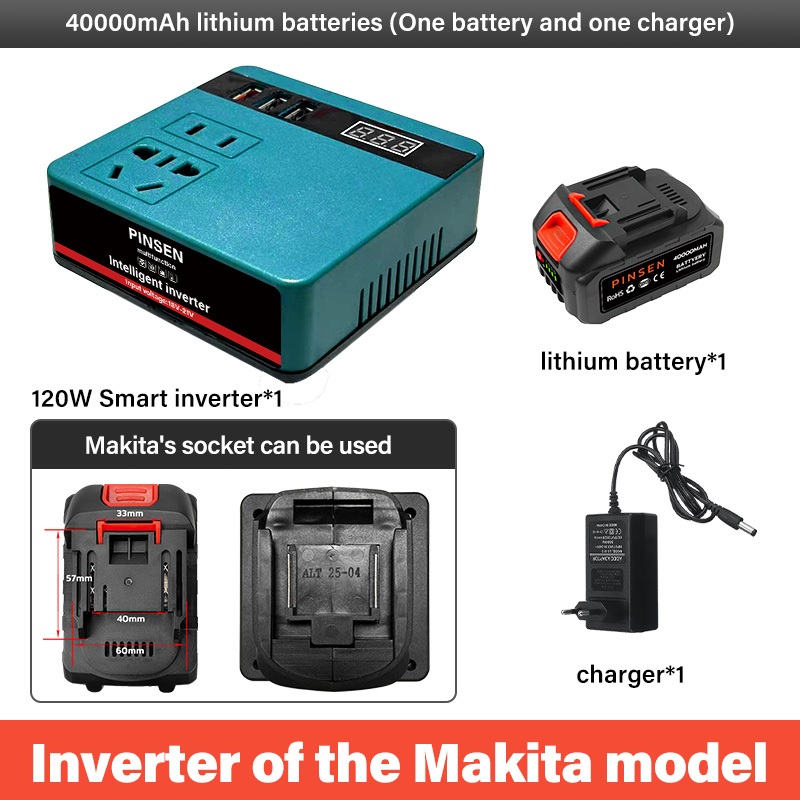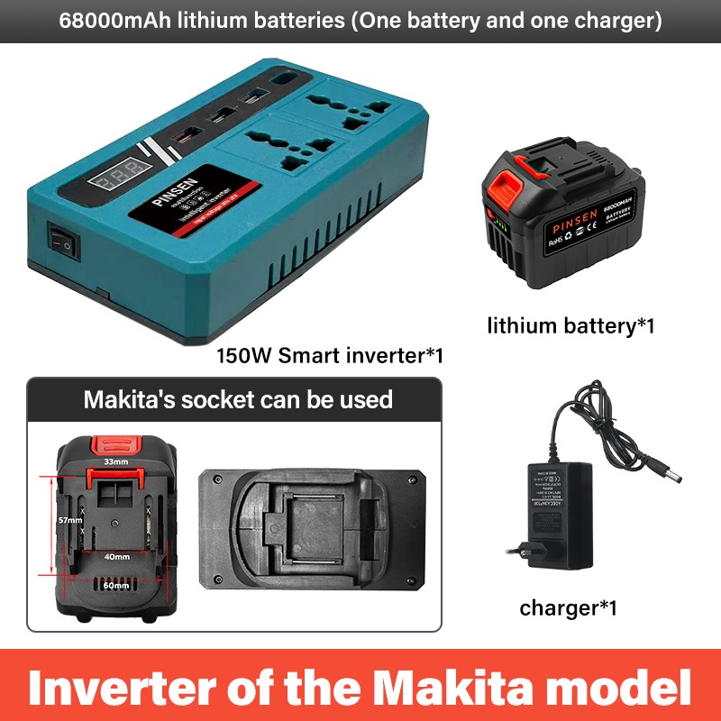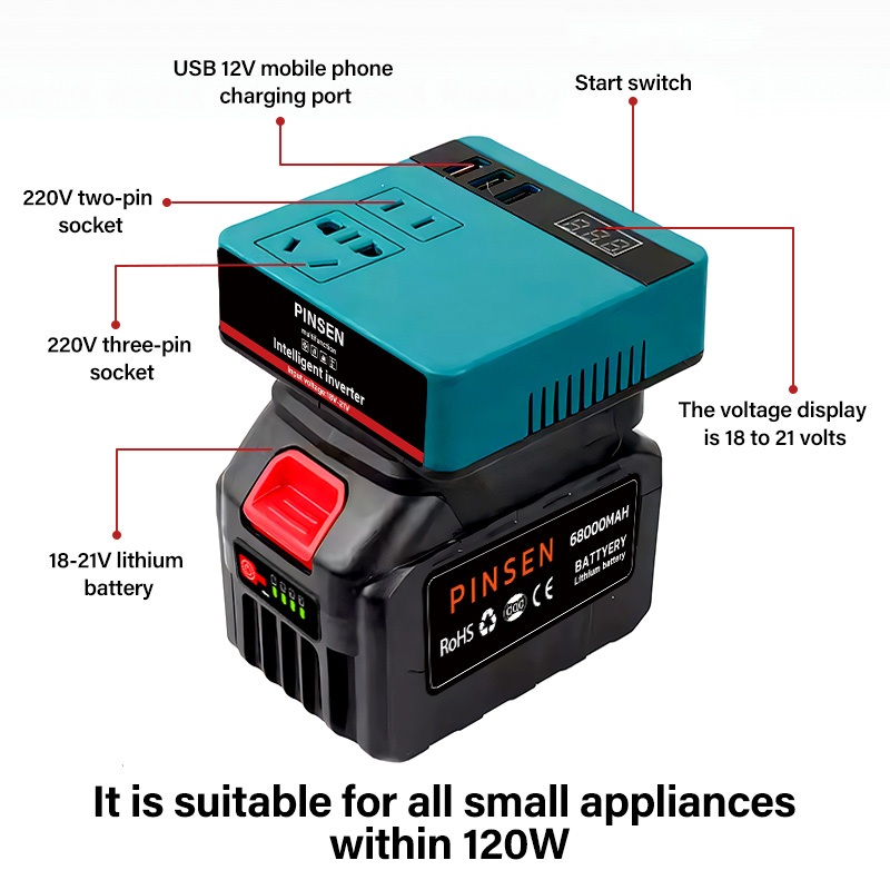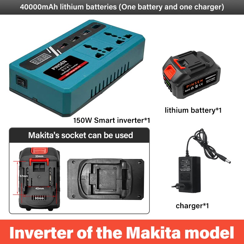 PINSEN Lithium Battery Smart Inverter 18V/21V to 220V AC 150W USB/Type - C Mabilis na Pag - charge