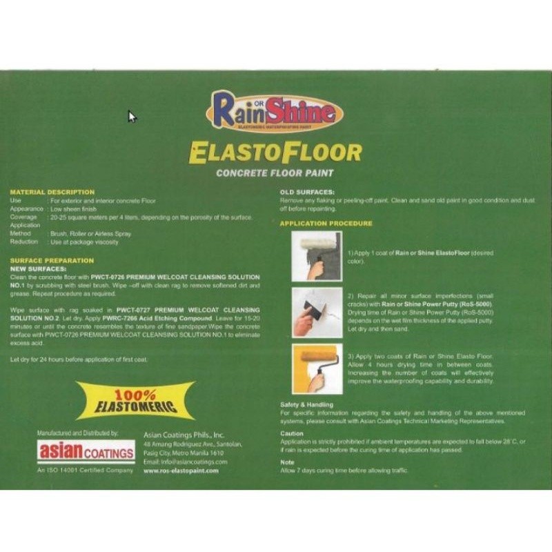 PINTURA SA SAHIG RAIN OR SHINE ELASTOFLOOR WATERBASED CONCRETE FLOOR PAINT 16 LITERS