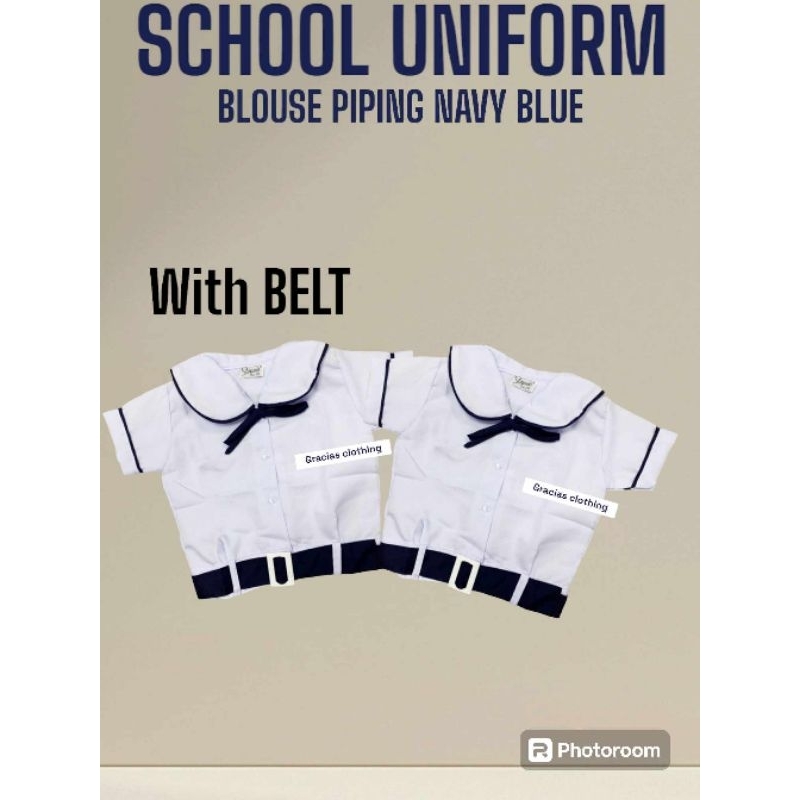 PIPING WITH BELT BLOUSE SCHOOL UNIFORM/ PIPIMG NAVYBLUE KATRINA/PIPING WITH BELT