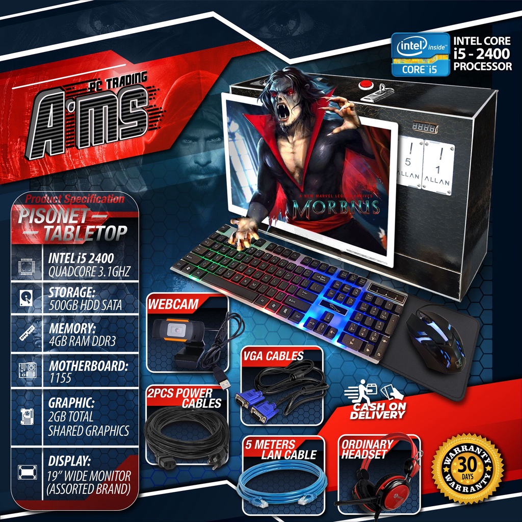 PISONET Intel i5 2nd Gen Processor 4GB RAM DDR3 500GB HDD 17SQUARE MONITOR (assorted brand)