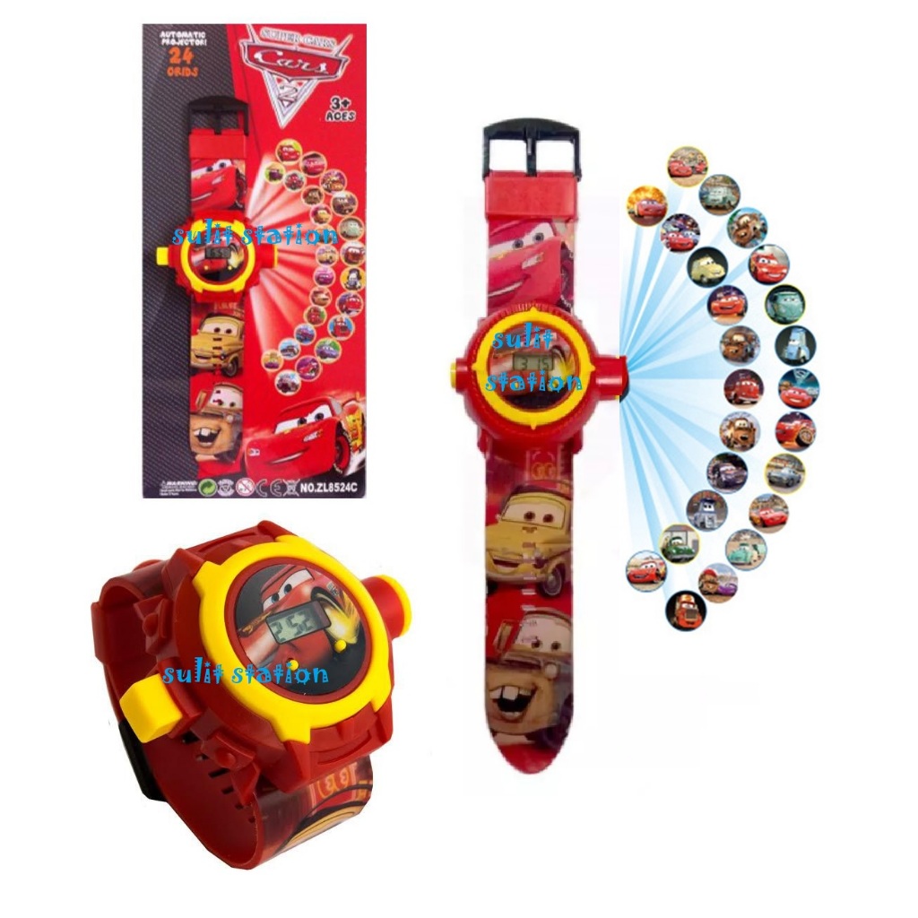 PIXAR CARS LIGHTNING McQUEEN KIDS DIGITAL LED LIGHTED PROJECTOR WATCH with 24 grids watches