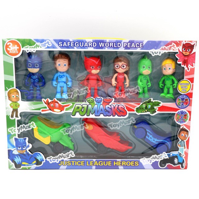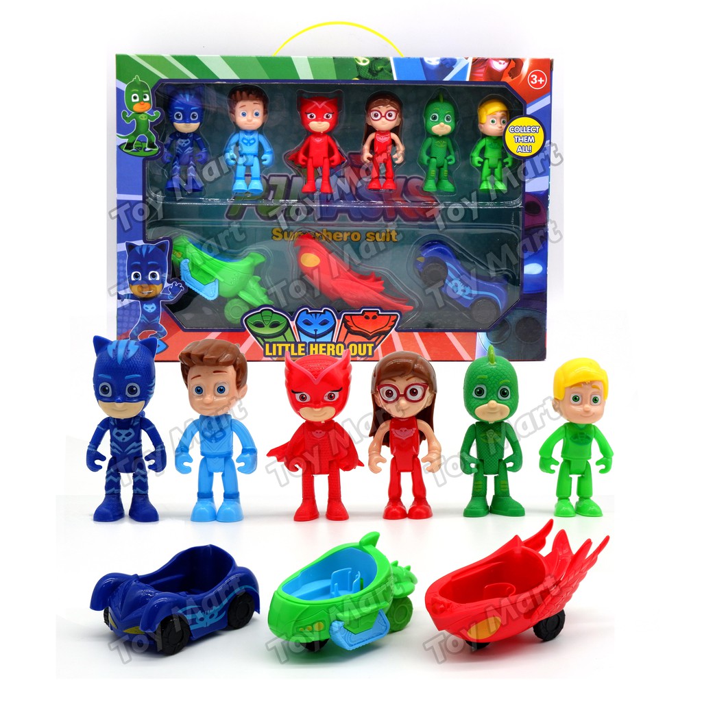 PJ Mask Superhero Suits 6 Figures + 3 Super Car Figurine Set Catboy Owlette Gekko PJ Masks