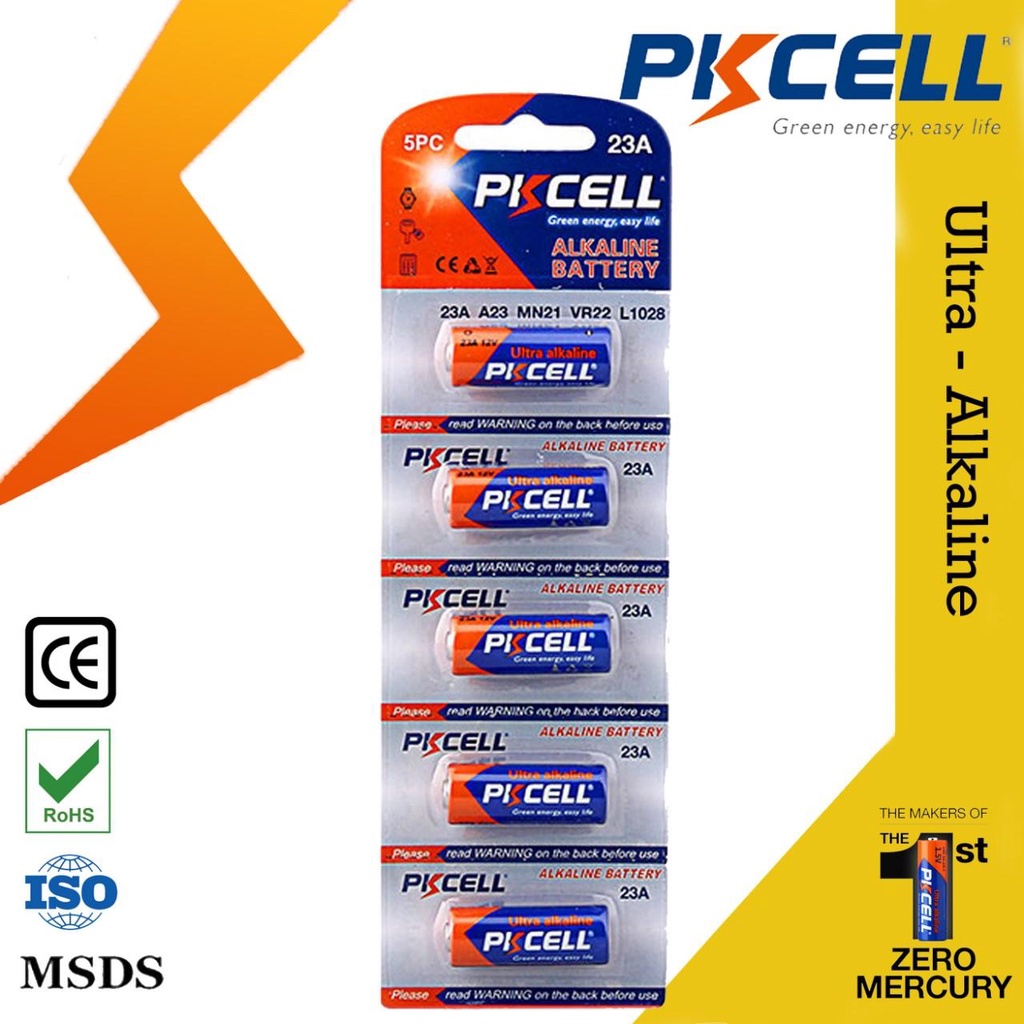 PKCELL 5pcs 12V (23A) 23AE 21/23 23GA MN21 Alkaline Battery for Doorbell,Remote Control,dry battery