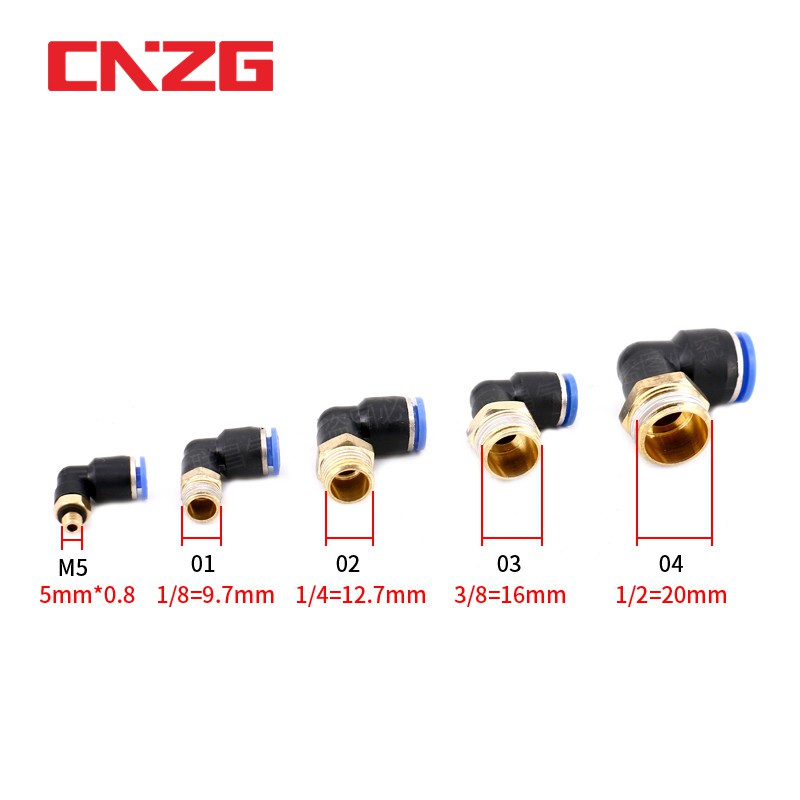 PL Elbow 1/8 1/4 3/8 1/2 BSPT Male Thread Inner Push Air Pneumatic Fitting 90 degree Quick Connector