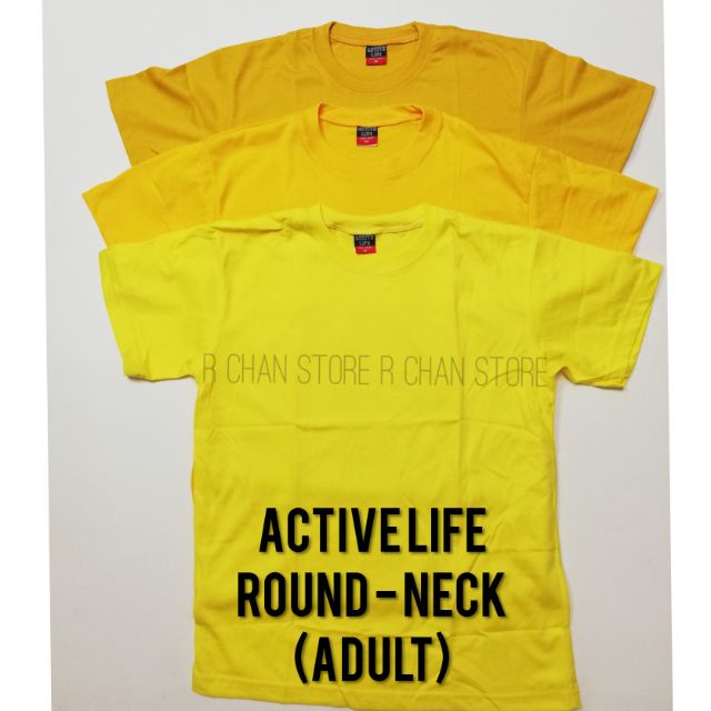 PLAIN COLOR! ROUND NECK TSHIRTS( ACTIVE LIFE) XS TO 3XL!! YELLOW SHADES!