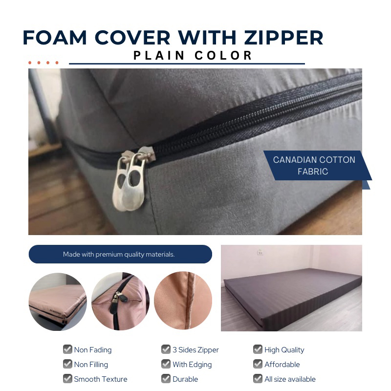 PLAIN COLOR 4" inch and 6"inch KAPAL FOAM COVER WITH ZIPPER (C-SHAPE) Canadian Cotton
