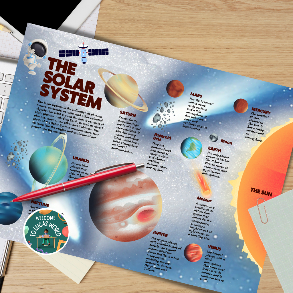 LAMINATED SOLAR SYSTEM / PLANETS CHARTS FOR KIDS, EDUCATIONAL LEARNING POSTERS, SCIENCE ASTRONOMY